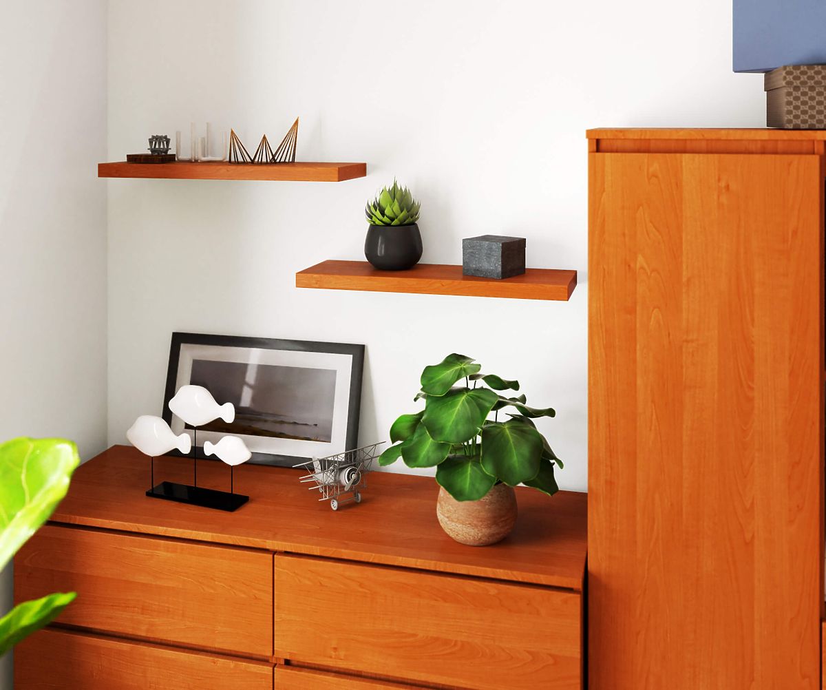Hergestellt aus laminierter, abriebfester Platte. Die Kante ist mit Melamin beklebt. Unsichtbare Wandhalterungen sind im Lieferumfang enthalten.