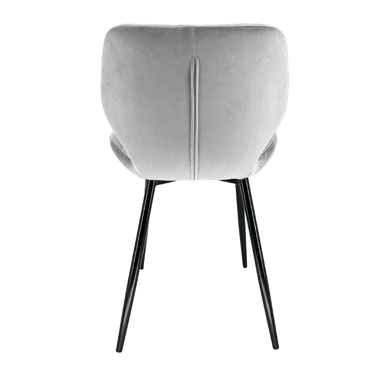 Gepolsterter Stuhl mit grauem Veloursbezug und schwarzen Metallbeinen. .. mehr