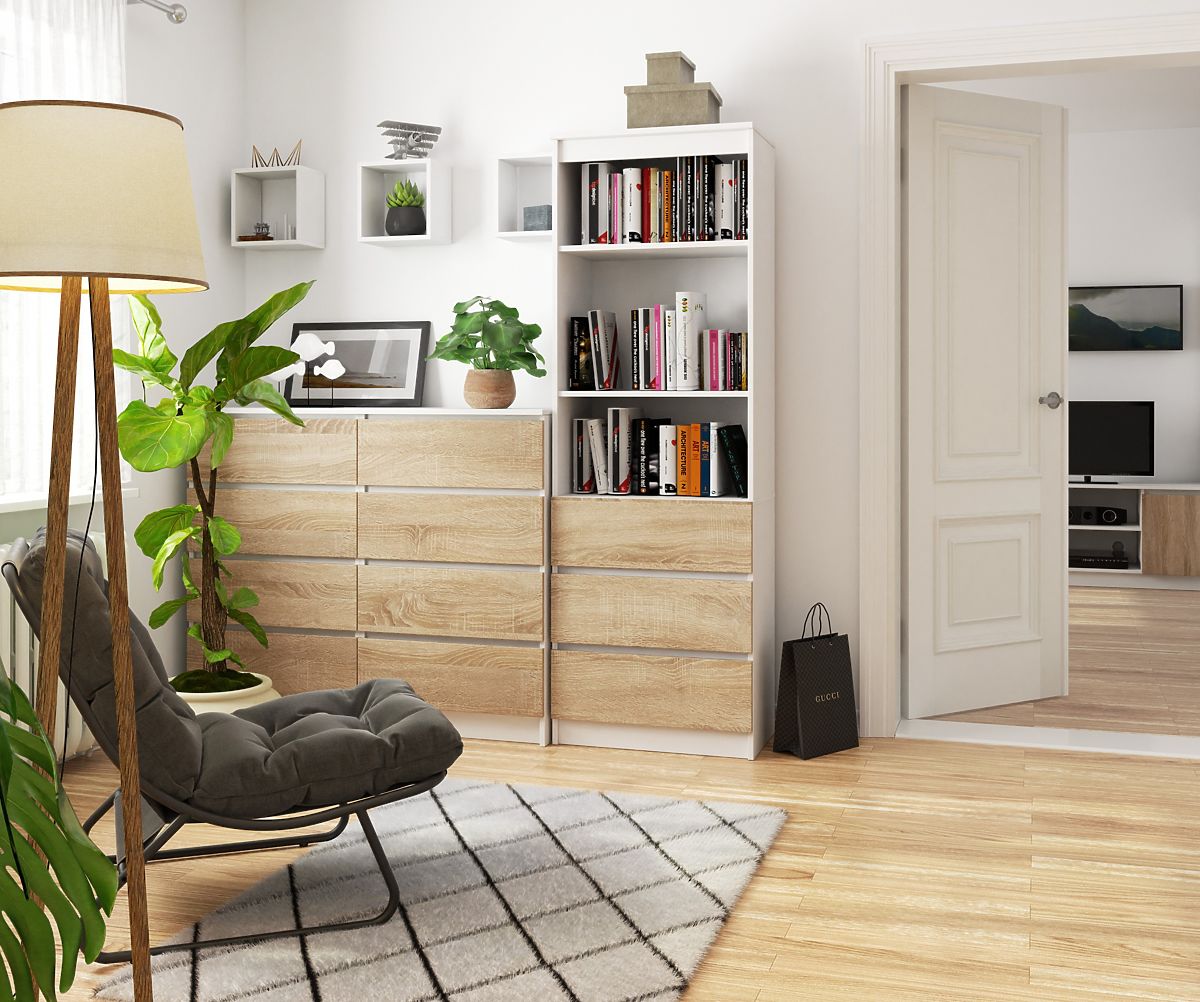 BÜROREGAL CLP 60cm 3 SCHUBLADEN 2 REGALBÖDEN Farbe Weiß Fronten Sonoma