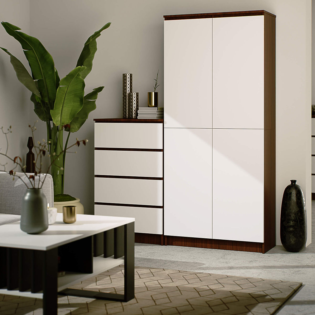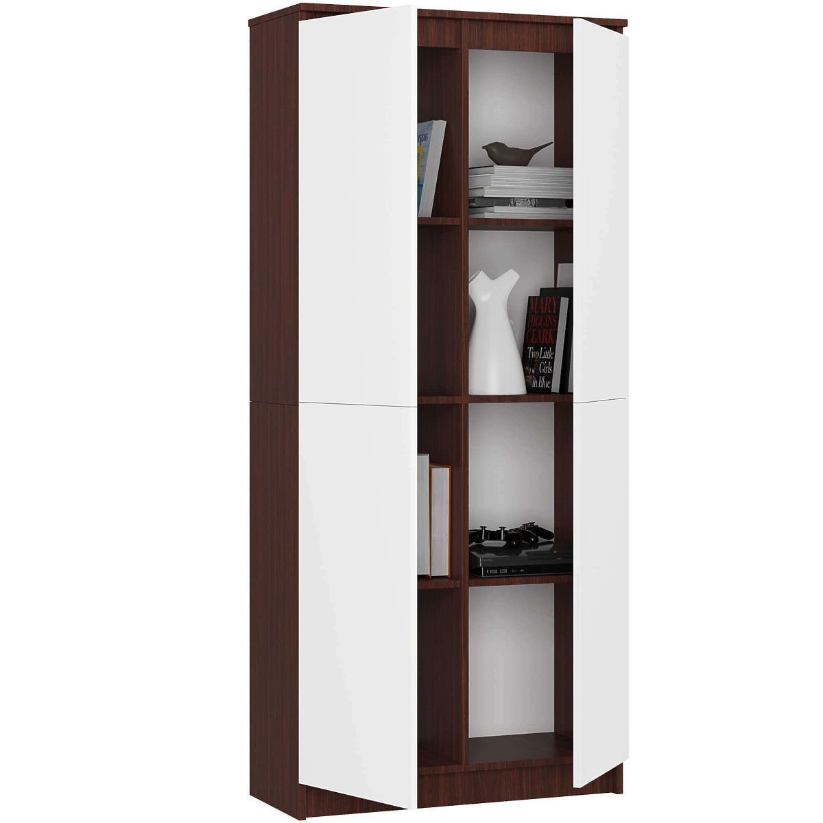 GESCHLOSSENES REGAL - BÜROSCHRANK CLP 80cm 2 TÜREN 8 REGALBÖDEN Farbe Wenge Front Weiß