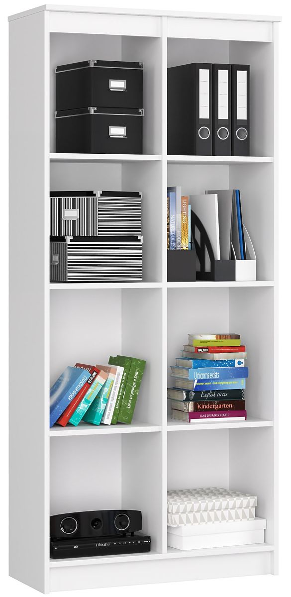 Das Büroregal eignet sich perfekt für jedes Zuhause oder jede Wohnung. Sie können dort Ihre wichtigsten Bücher und Ordner aufbewahren. Immer mehr Büros bestellen solche einfachen und eleganten Möbel, um den Arbeitskomfort zu verbessern. Das weiße Regal passt sicherlich zu Ihrer Umgebung. Acht einzigartig angeordnete Fächer ermöglichen die Aufbewahrung aller notwendigen Dokumente und Büroaccessoires. Seine Universalität und hohe Qualität garantieren ein einzigartiges Möbelstück für Sie.