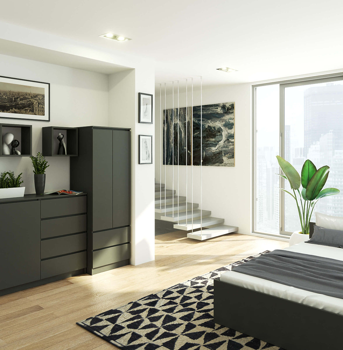 Schrank mit 2 Türen und 2 Schubladen in Graphit Grau. .. mehr