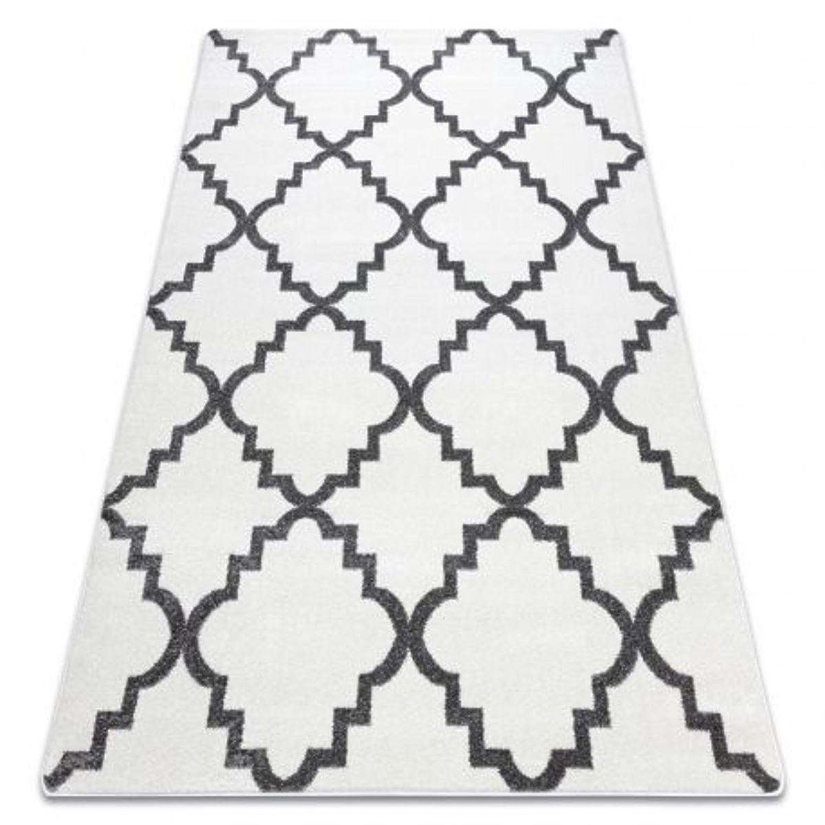 Moderner Teppich mit marokkanischem Kleeblattmuster, creme-grau. .. mehr
