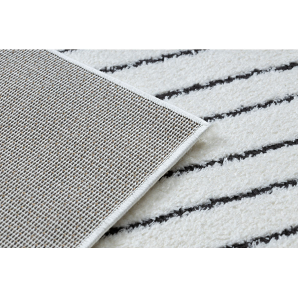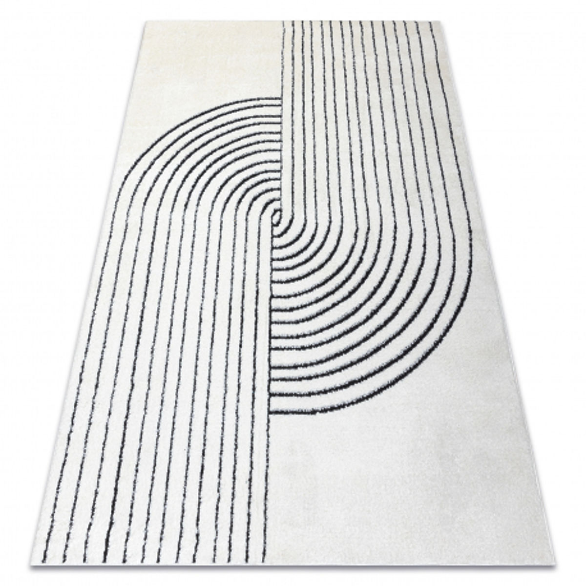 Rechteckiger Teppich mit geometrischem Muster in Creme und Schwarz. .. mehr