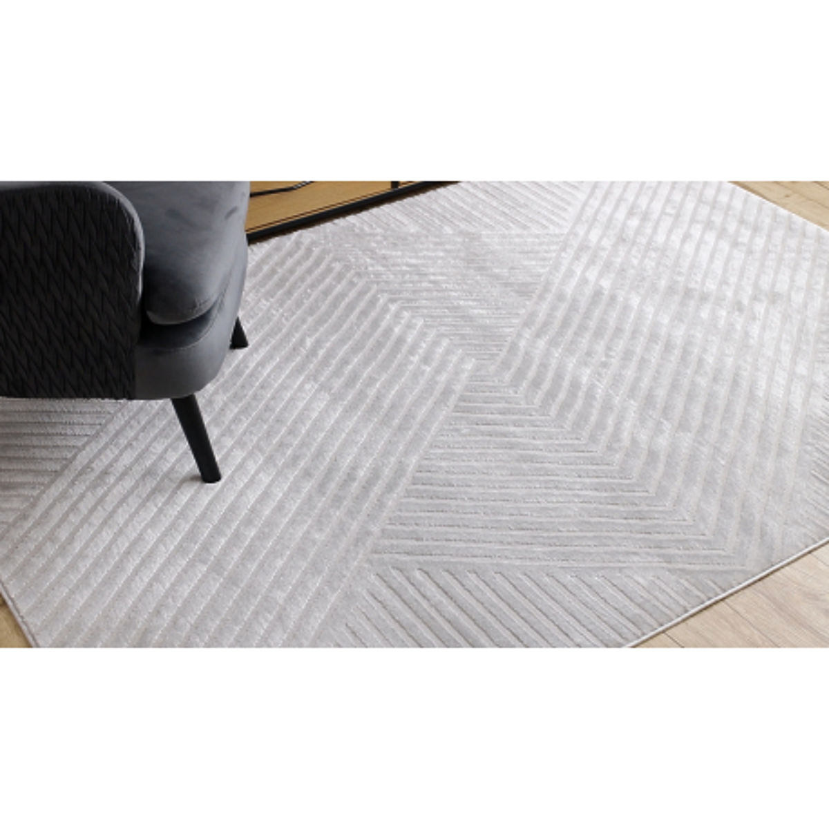 Der stilvolle Teppich BALANCE 1503 in elegantem Grau ist eine hervorragende Wahl für moderne Innenräume, die ein zeitloses Design und eine angenehme Gemütlichkeit erfordern. Er kombiniert ein geometrisches Muster, eine strukturierte Oberfläche und einen leichten Glamour-Effekt, wodurch er zu einem auffälligen Accessoire im Wohnzimmer, Schlafzimmer oder Arbeitszimmer wird. Dank der Verwendung einer Mischung aus Polyester und Acryl sowie einem Garn, das zu 50 % aus Polypropylen und 50 % aus Polyester besteht, ist der Teppich weich, langlebig und pflegeleicht. Die Dicke von 11 mm bietet angenehmen Komfort beim Gehen und eine hervorragende Wärmeisolierung. Eine Dichte von 360.000 Punkten/m² garantiert eine hochwertige Verarbeitung und eine lange Lebensdauer. Der graue Farbton verleiht dem Raum Eleganz und lässt sich perfekt mit modernen und minimalistischen Möbeln kombinieren.