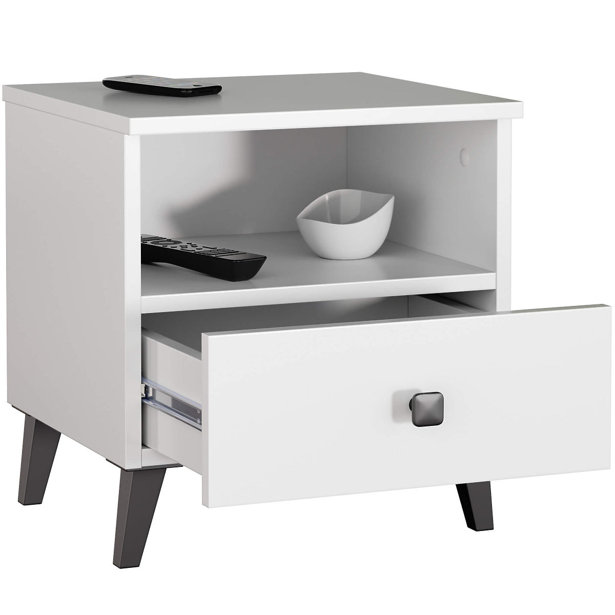 NACHTTISCH MOBI 1 SCHUBLADE 1 FACH WEISS SCHWARZ