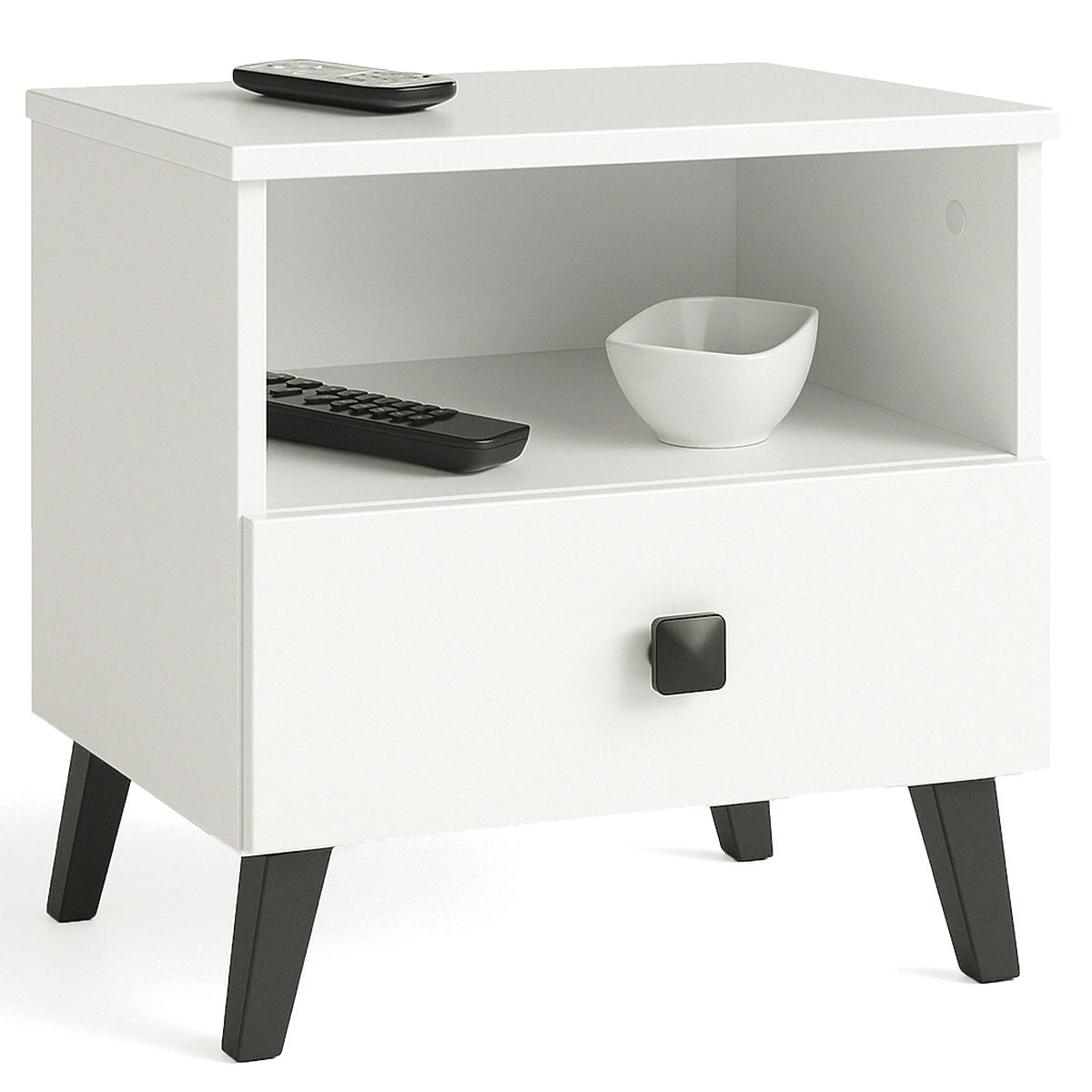 Weißer Nachttisch MOBI K01 mit 1 Schublade und 1 Fach. .. mehr