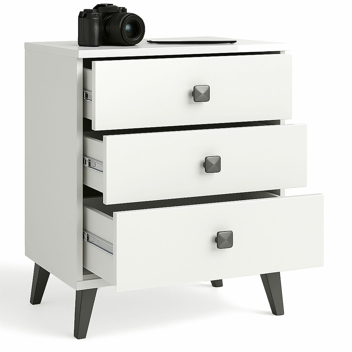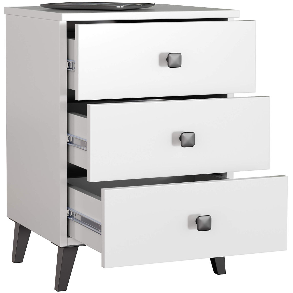 NACHTTISCH MOBI 3 SCHUBLADEN WEIß SCHWARZ