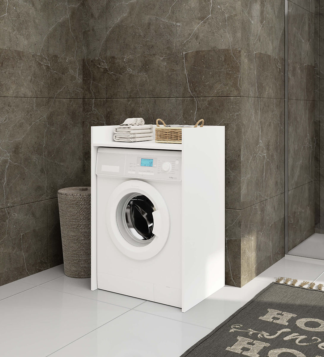 Wenn wir unser Badezimmer bequem und stilvoll einrichten möchten, sollten wir auf solide und funktional gestaltete Möbel achten. Eine solche Lösung ist sicherlich die Abdeckung über der Waschmaschine. Es ist eine optimale Möglichkeit, den Raum über der Waschmaschine zu nutzen, der normalerweise ungenutzt bleibt. Die optimalen Abmessungen dieser Säule machen sie auch zu einer großartigen Lösung für Badezimmer mit kleiner Fläche. Die ergonomische Form ermöglicht die Nutzung in jedem Raum. Der schöne weiße Farbton garantiert ein elegantes Aussehen des Badezimmers. Die laminierte Platte, aus der dieser Schrank gefertigt ist, ist ein hochwertiges Material. Sie gewährleistet die Langlebigkeit und Festigkeit der Möbel sowie die Erhaltung ihres ästhetischen Aussehens.