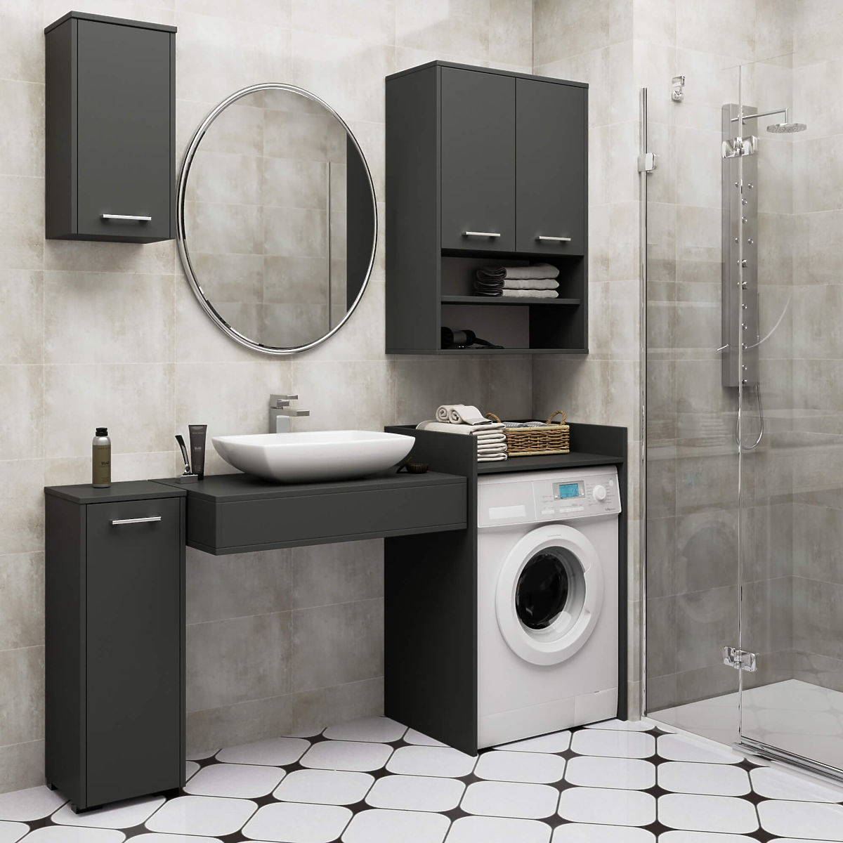 Schrank zur Nutzung des Raums über der Waschmaschine in Grafitgrau. .. mehr