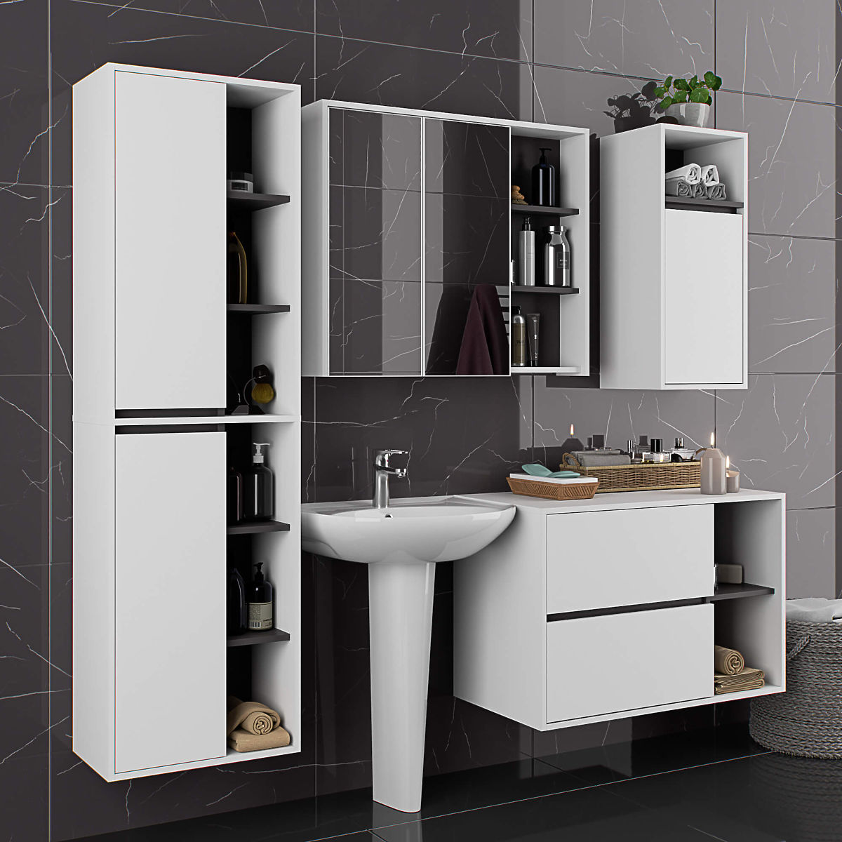 Lukahome.at » Badezimmer und Toilette / Badezimmerschränke / HÄNGENDER BADEZIMMERSCHRANK VAMI W50 2D 6P WEISS / GRAPHITGRAU