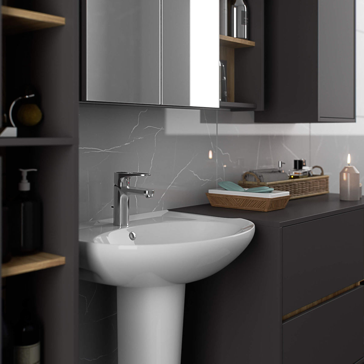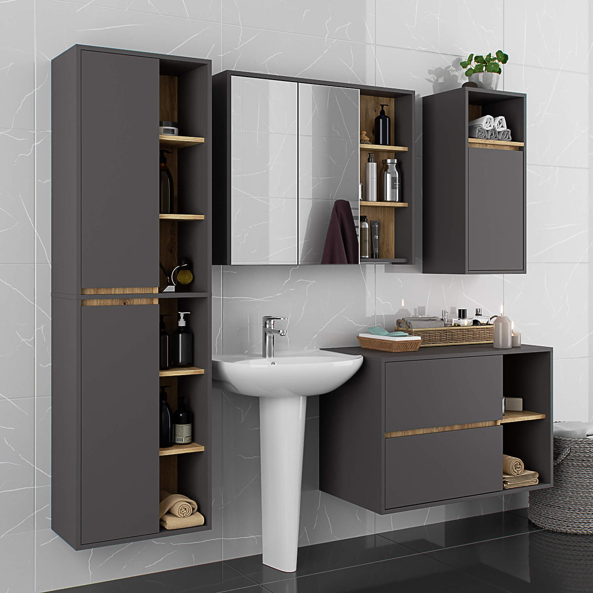 Lukahome.at » Badezimmer und Toilette / Badezimmerschränke / HÄNGENDES BADEZIMMERSCHRANK VAMI W50 2D 6P GRAFIT GRAU / EICHE ARTISAN