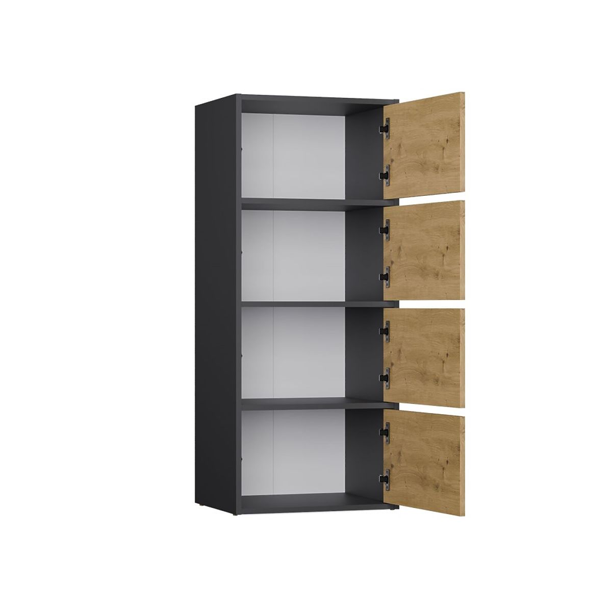 Dank der geräumigen Regale, die sich hinter den glatten Türen verbergen, bietet die Kommode viel Stauraum und erleichtert die Ordnung in jedem Raum.