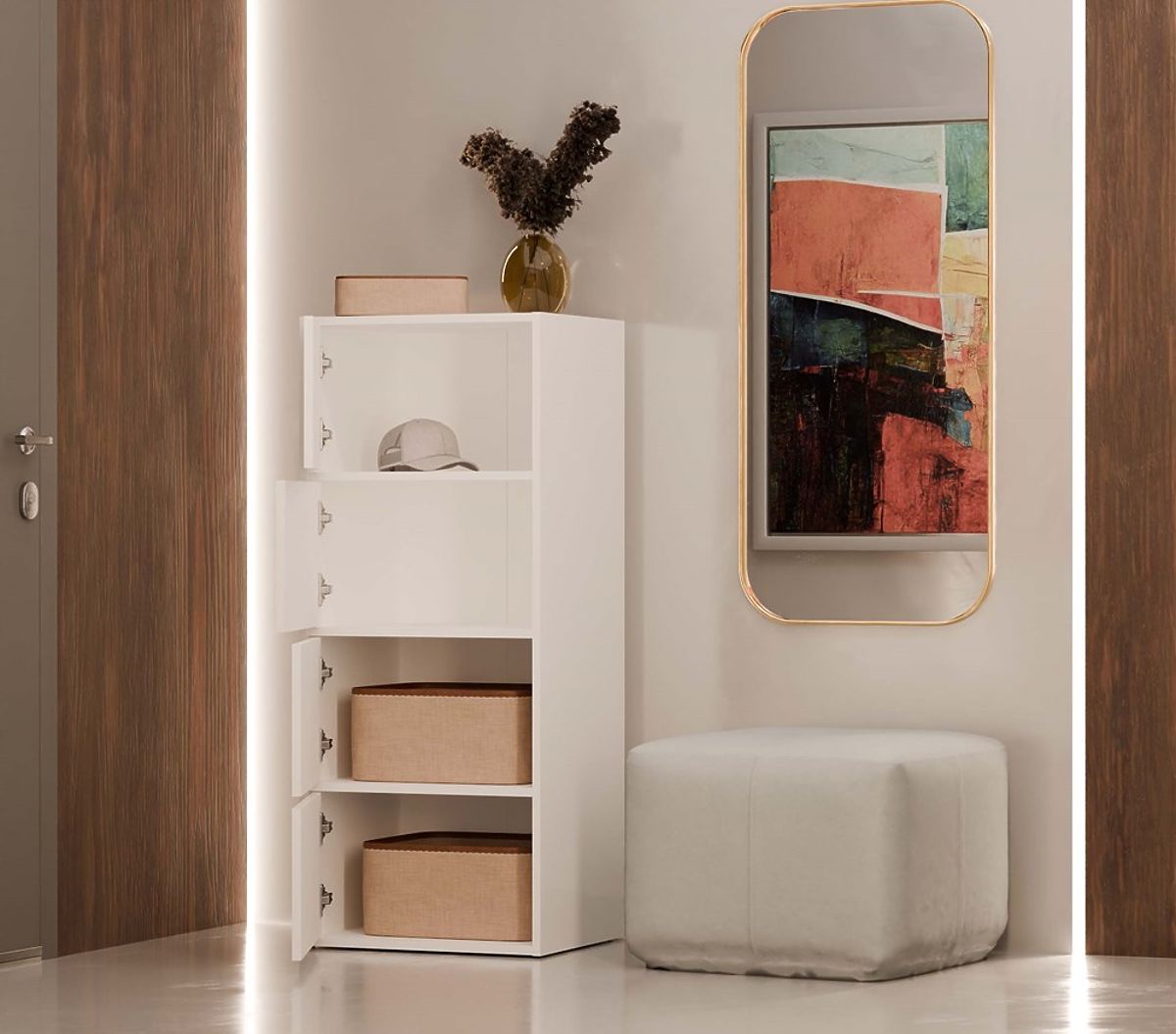 Elegante weiße Kommode ALMA mit 4 Türen und Regalen. .. mehr