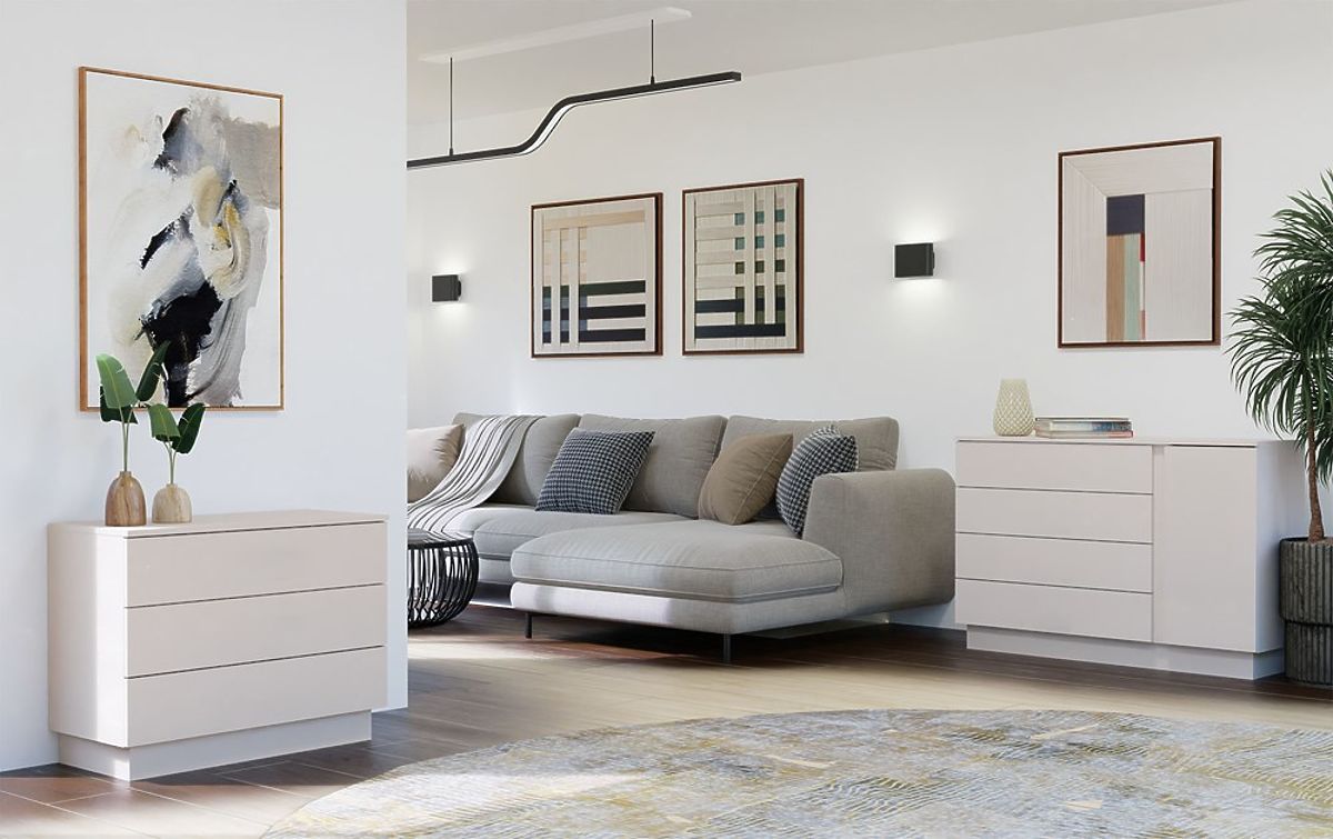 Moderne Kommode AMBER 3S mit 3 Schubladen in Kaschmir Beige. .. mehr