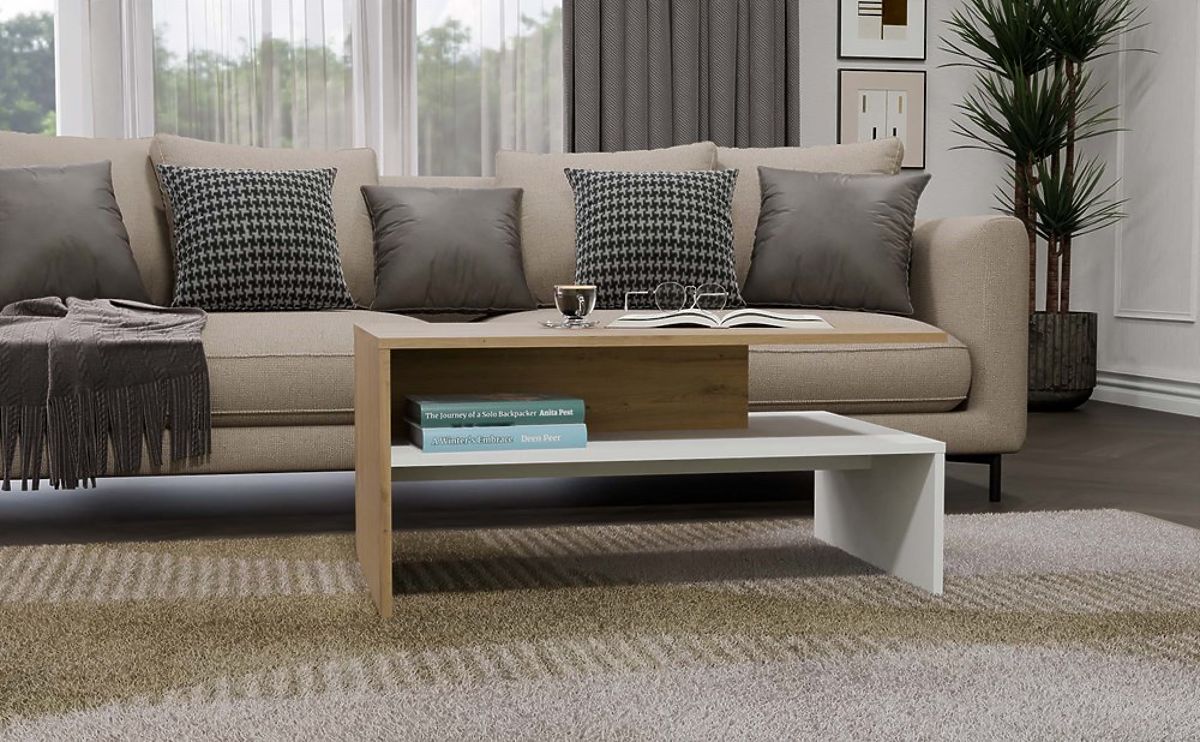 Moderner Couchtisch aus Eiche Artisan und Weiß. .. mehr