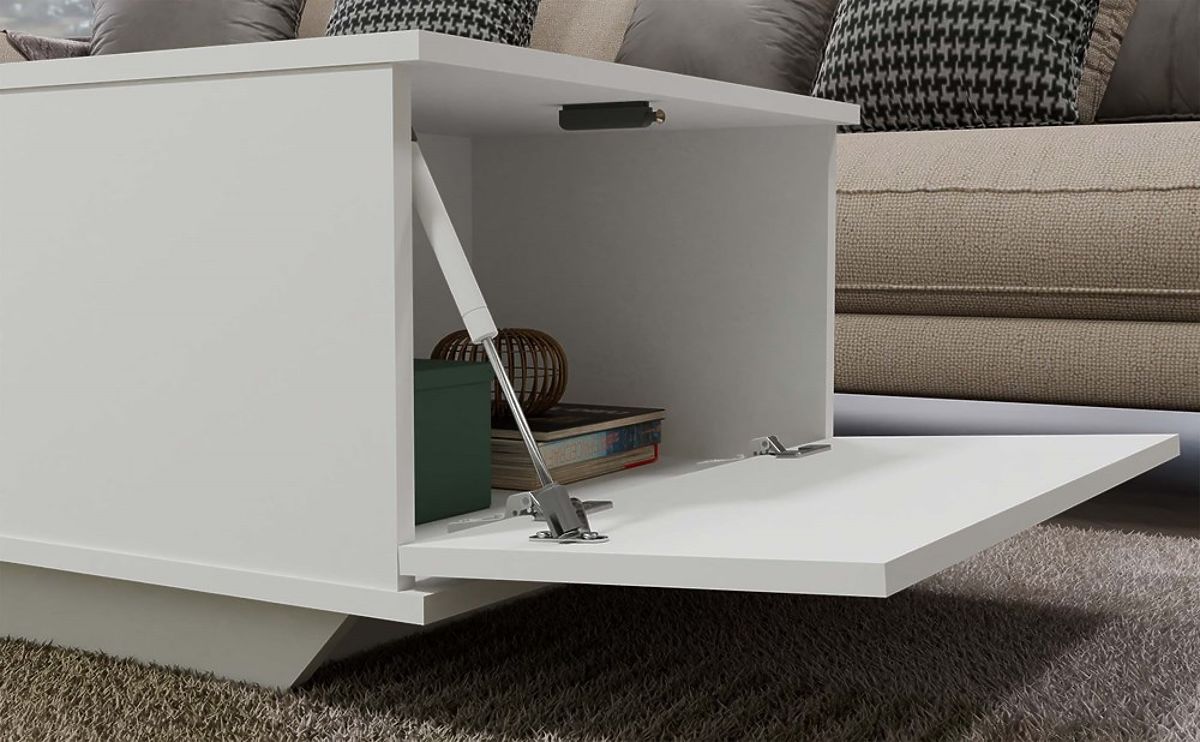 Moderner weißer Couchtisch mit geräumigem Stauraum. .. mehr