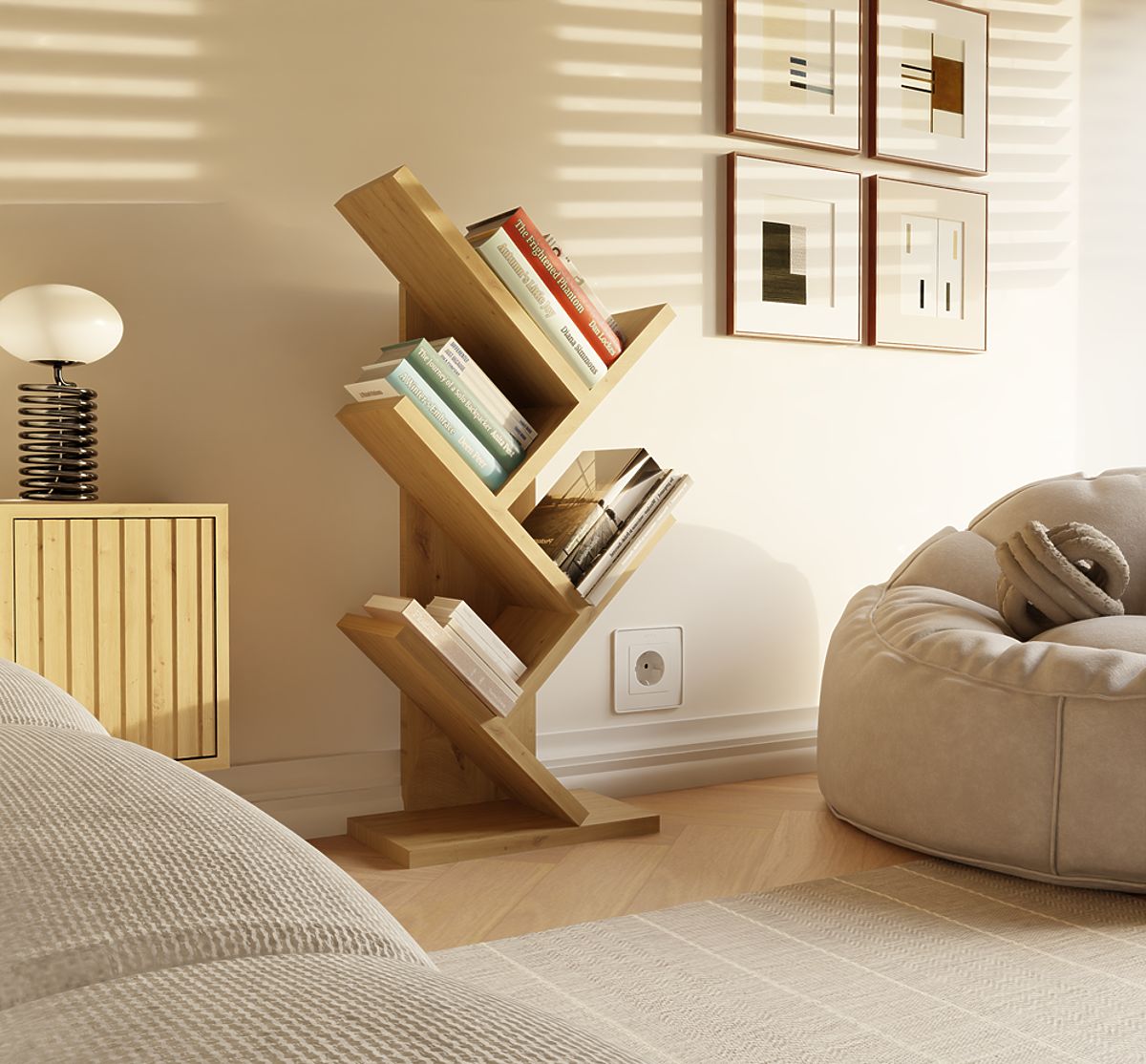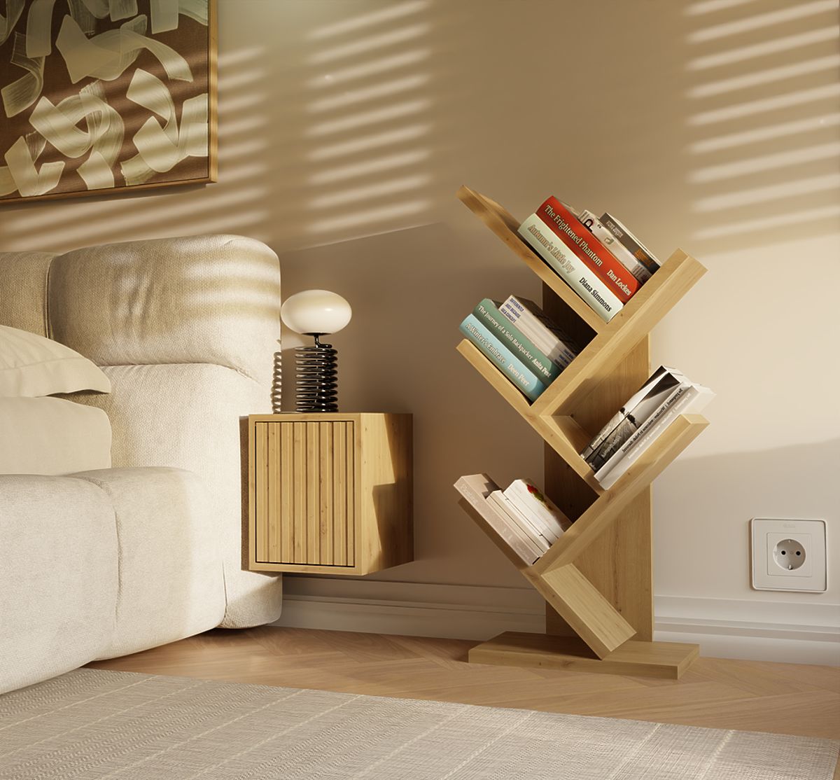 Das Regal Funny Mini ist die kleinere Version des beliebten Modells Funny, das für kleine Räume entwickelt wurde. Es eignet sich perfekt für Wohnzimmer, Büro, Kinder- oder Jugendzimmer. Dank der originellen, geometrischen Form und der schrägen Regalböden ermöglicht es eine ästhetische und bequeme Aufbewahrung von Büchern, Zeitschriften, Ordnern, Spielzeug und kleinen Gegenständen.