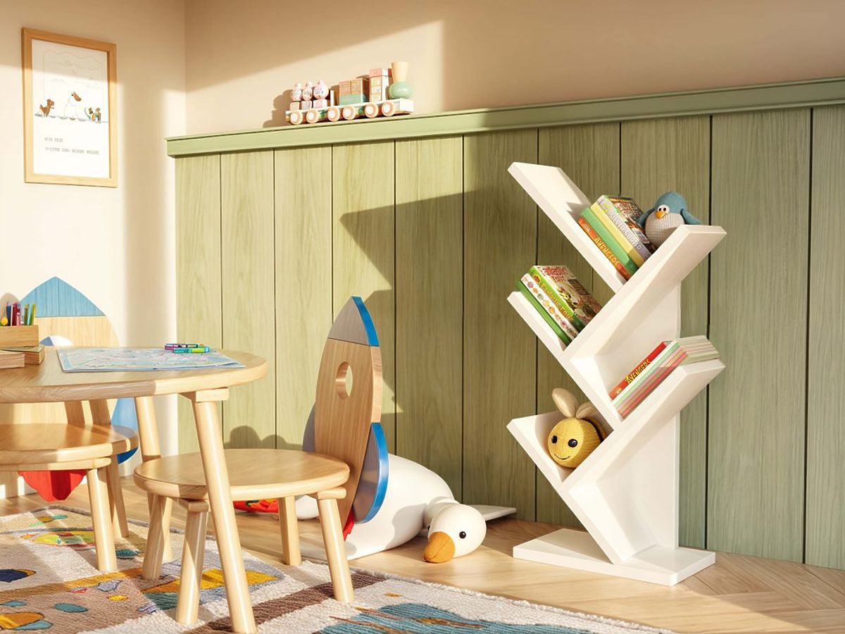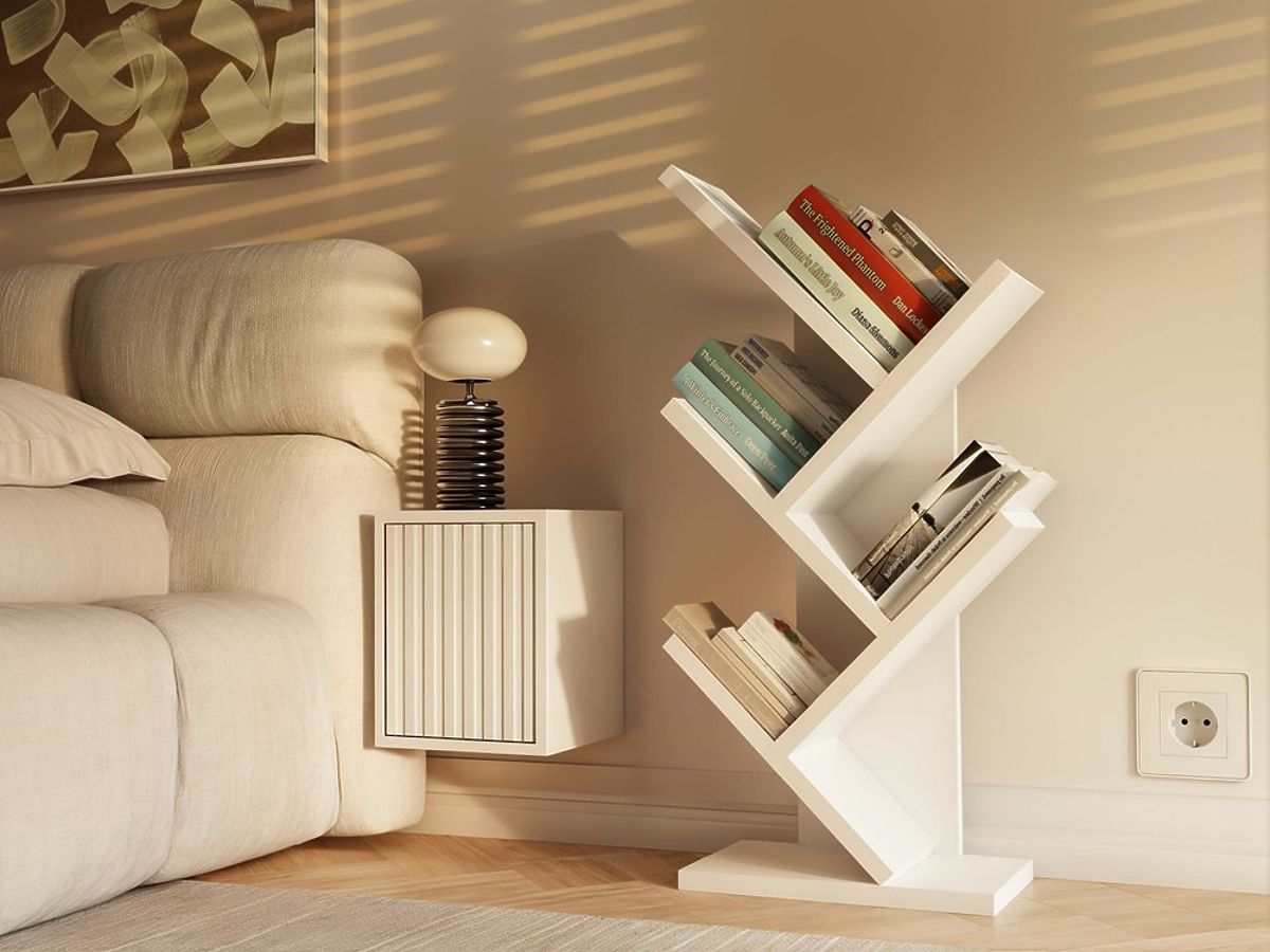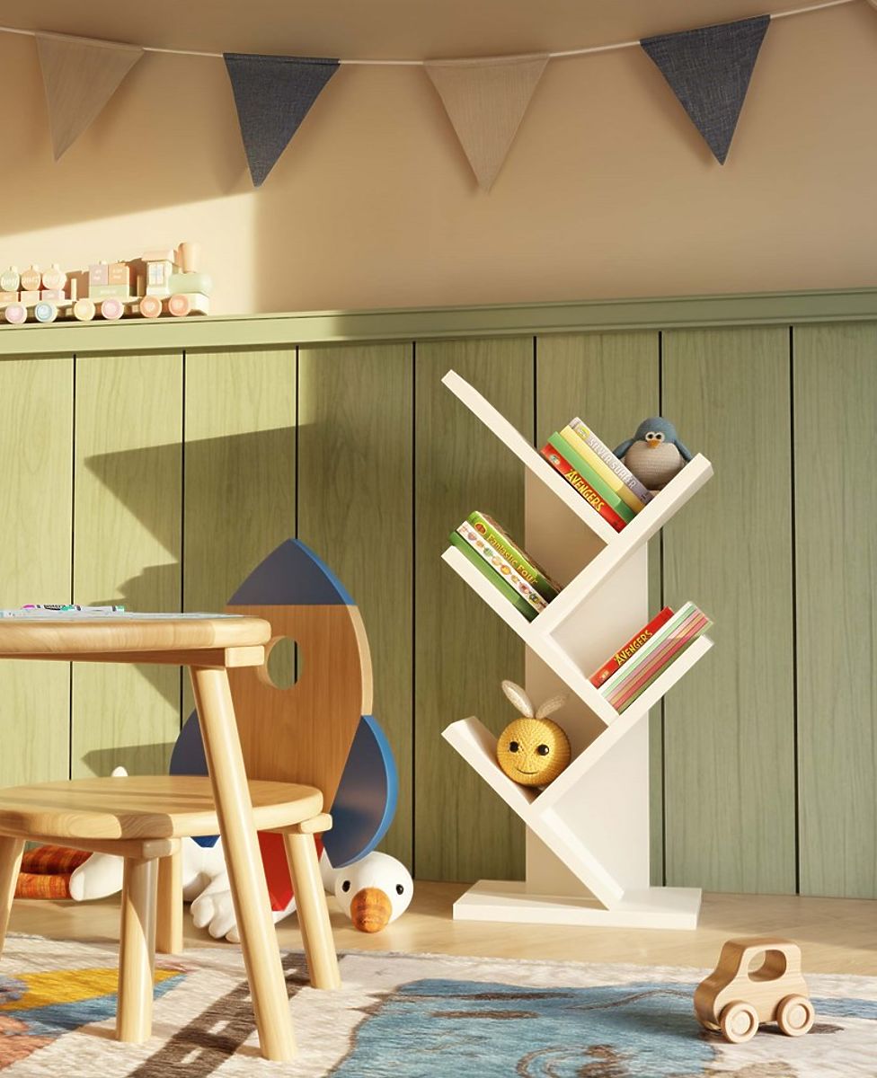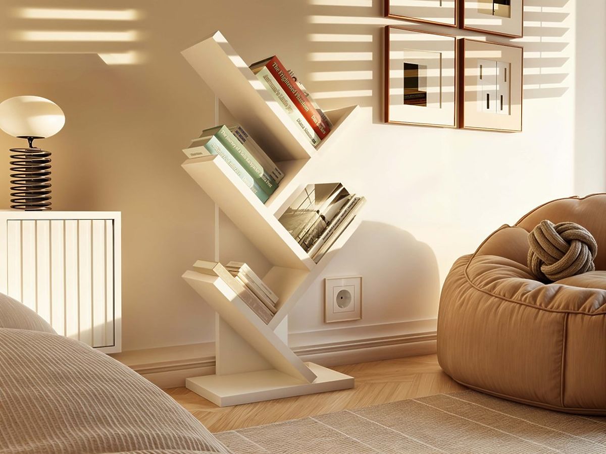 • 4 schräge offene Regalböden – ideal für Bücher, Aktenordner, Dekorationen oder Spielzeuge