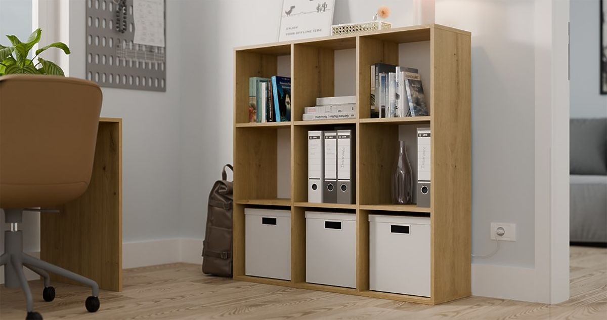 Regal mit 9 Kammern und fester HDF-Rückwand in Eiche Artisan. .. mehr