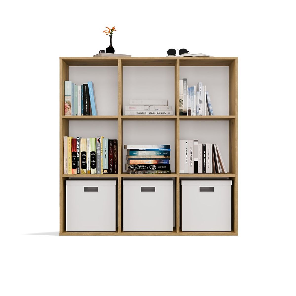 Lukahome.at » Nábytek / Regály / REGAL MALAX 3x3 H EICHE ARTISAN MIT FESTER RÜCKWAND HDF REGALEN 110x110 CM