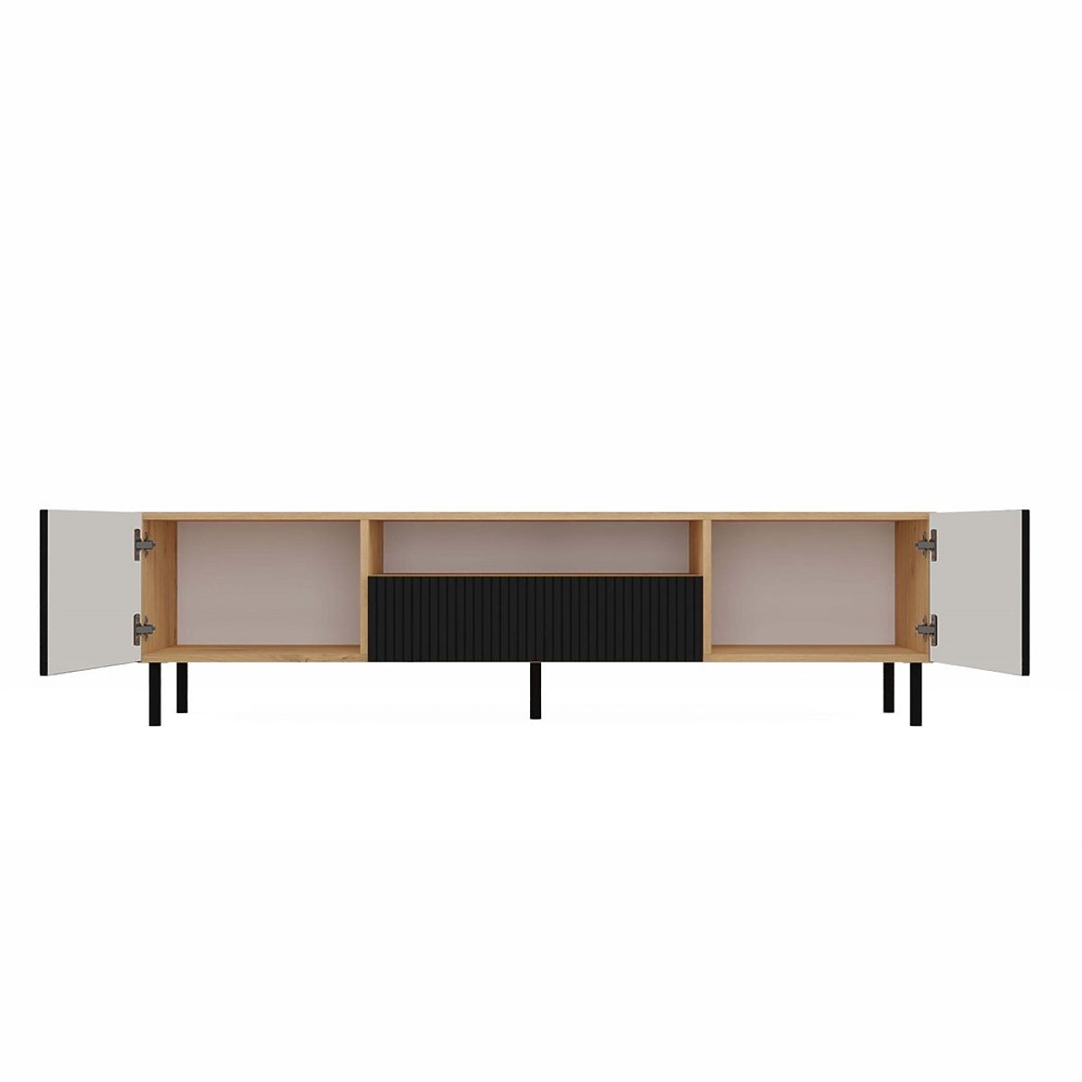 Ein großer Vorteil sind die runden Metallbeine mit einer Höhe von 13 cm, die der gesamten Konstruktion visuelle Leichtigkeit verleihen und die Stabilität des TV-Schranks gewährleisten.
