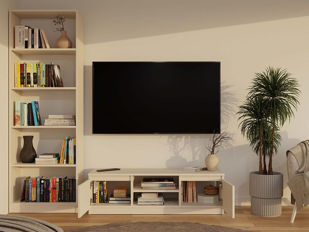 Der RTV-Schrank 120 kann als TV-Tisch, Platz für Audio-Video-Geräte und auch als zusätzlicher Stauraum im Wohnzimmer für kleine Alltagsgegenstände dienen.