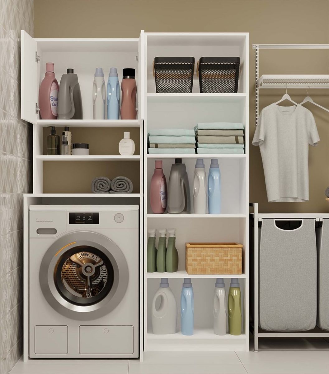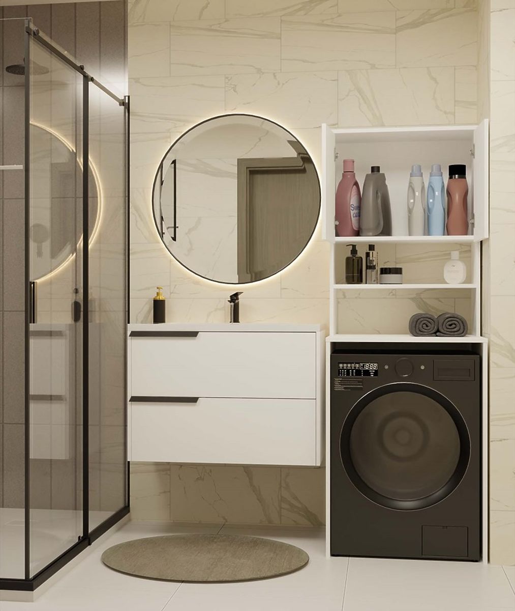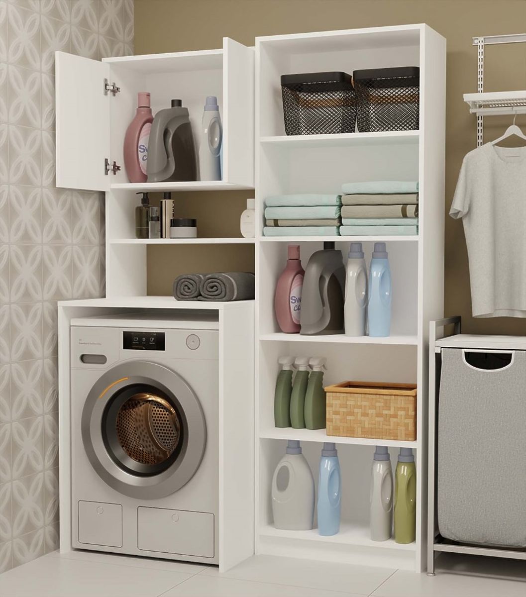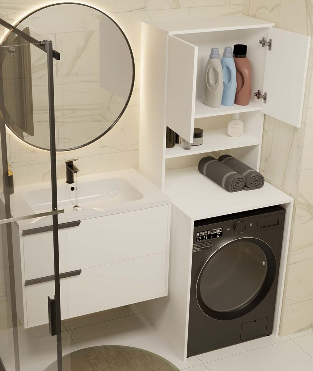 Badezimmerschrank Pola MULTI WEISS mit Regalen über der Waschmaschine. .. mehr