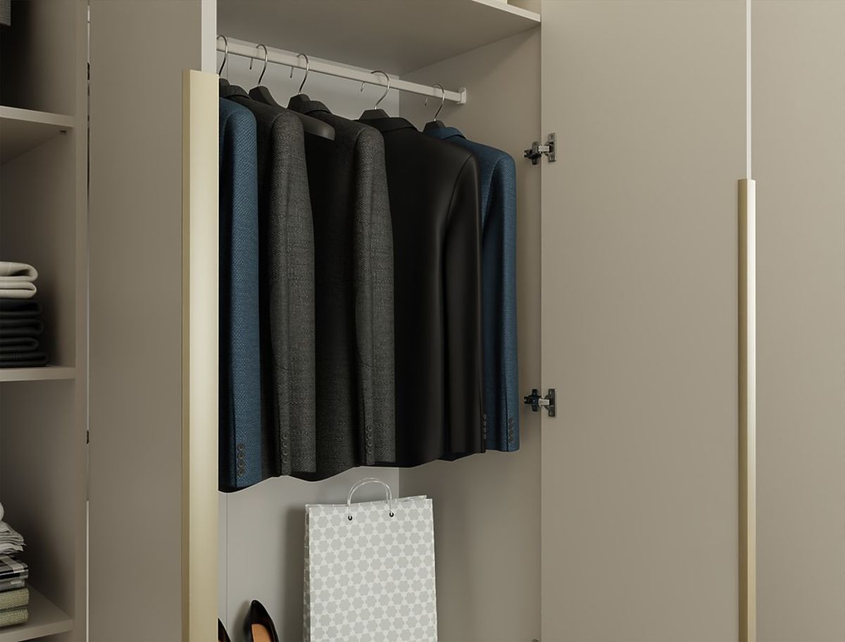 • Breiter Bereich mit Stange – bequemes Aufhängen von Jacken, Mänteln, Anzügen und langen Kleidern.