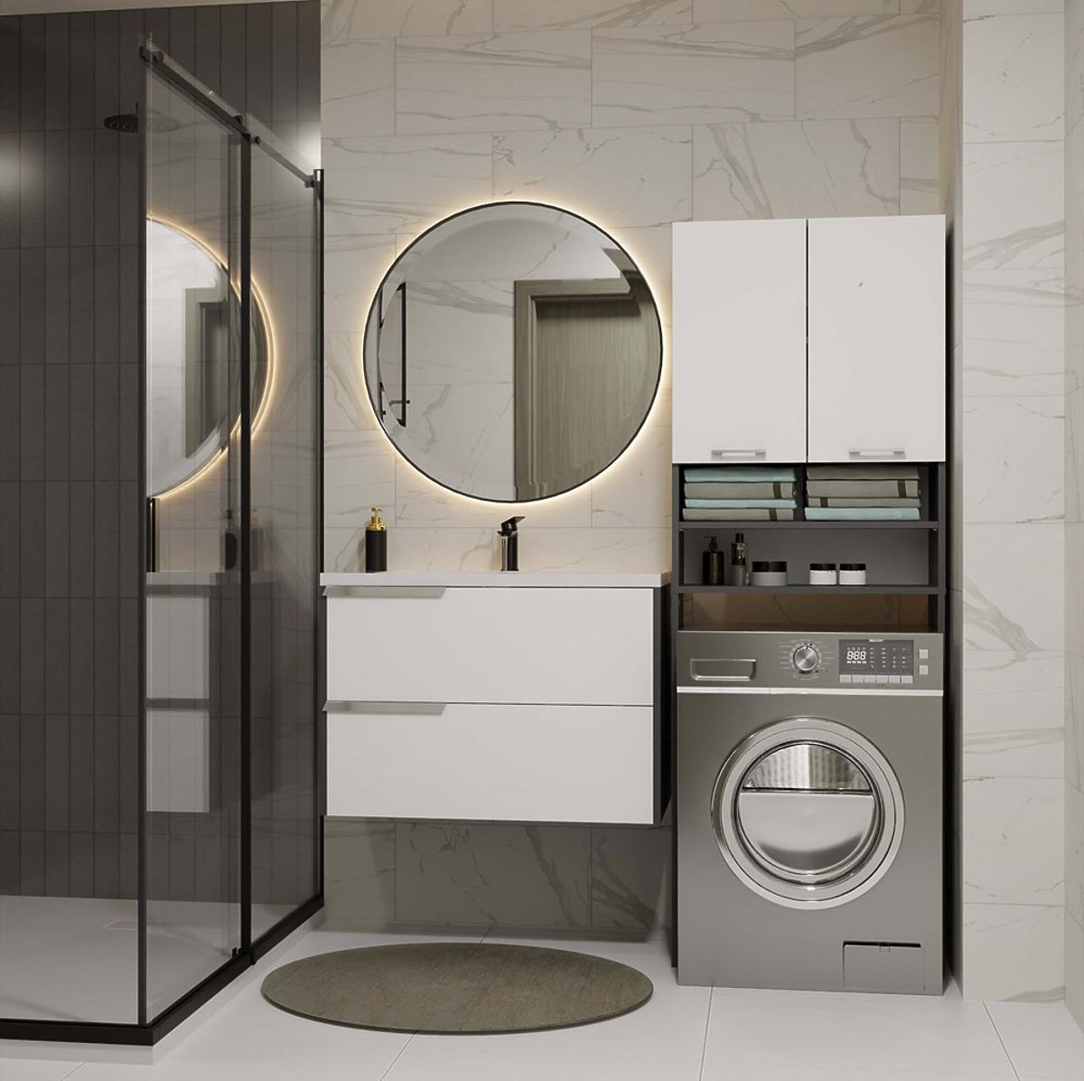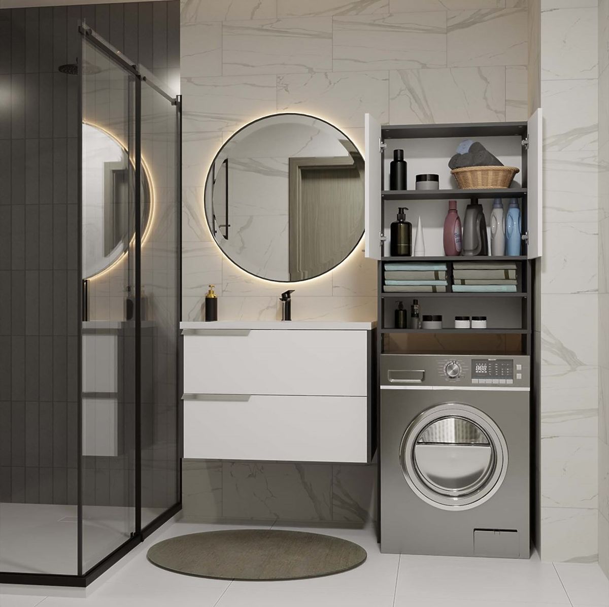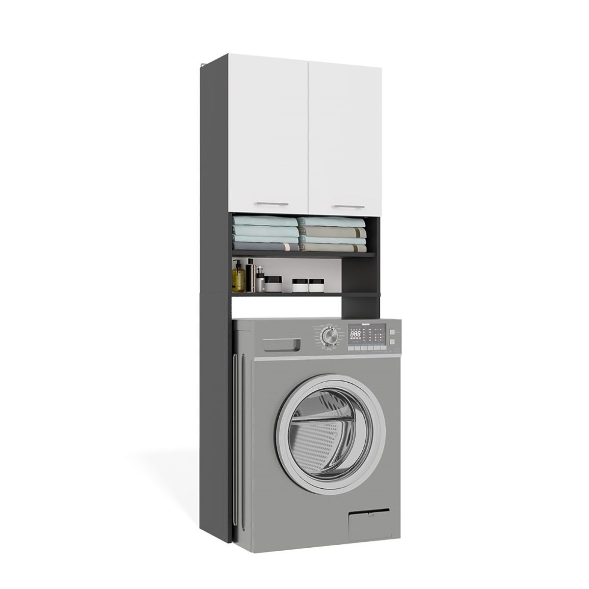 Badezimmerschrank über der Waschmaschine POLA DK ANTHRAZIT WEISS Regal Säule 180X64X30