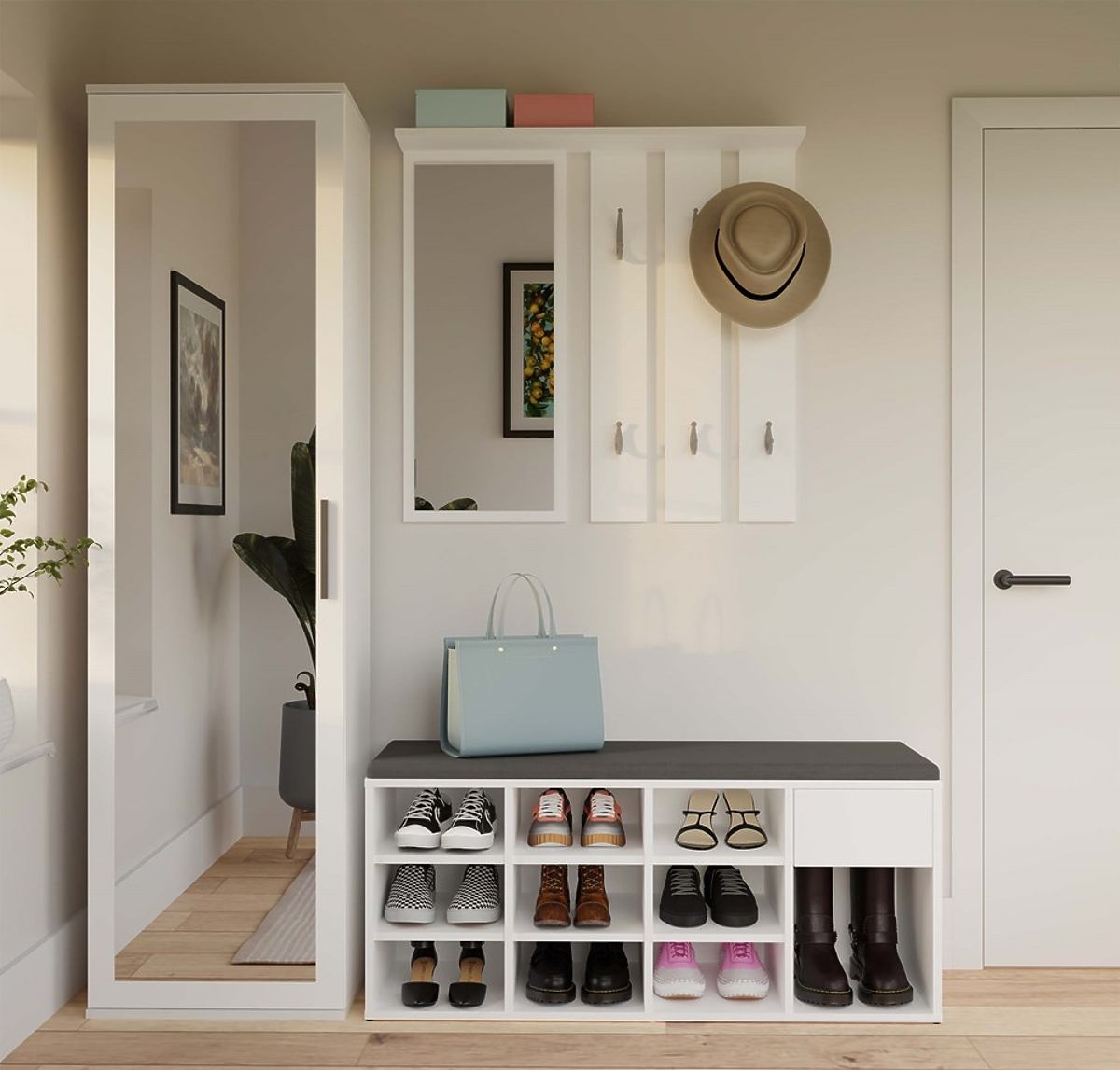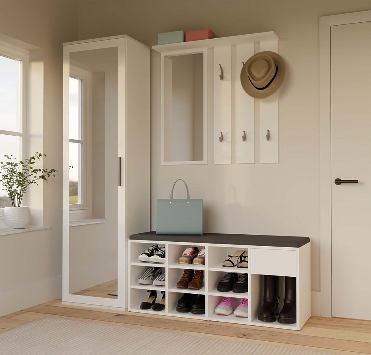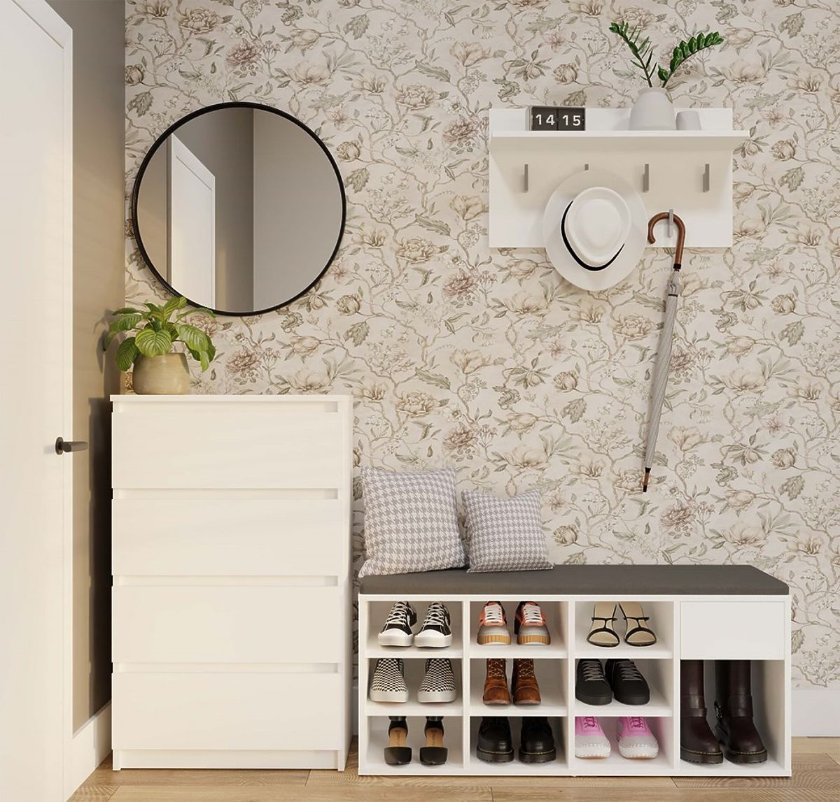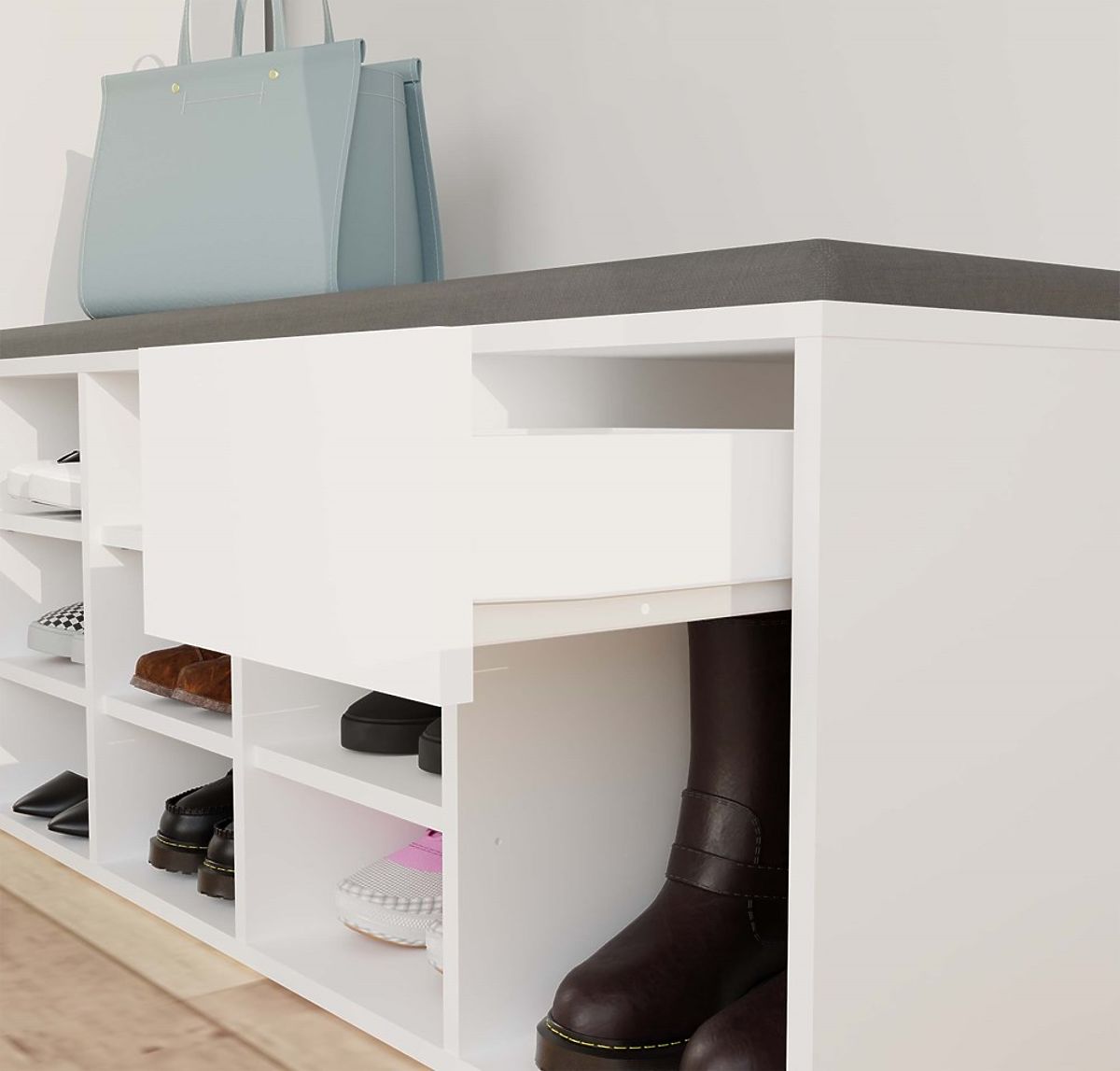 Offener Schuhschrank mit Sitz und Schublade für den Flur. .. mehr