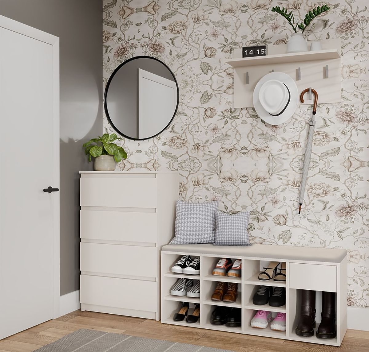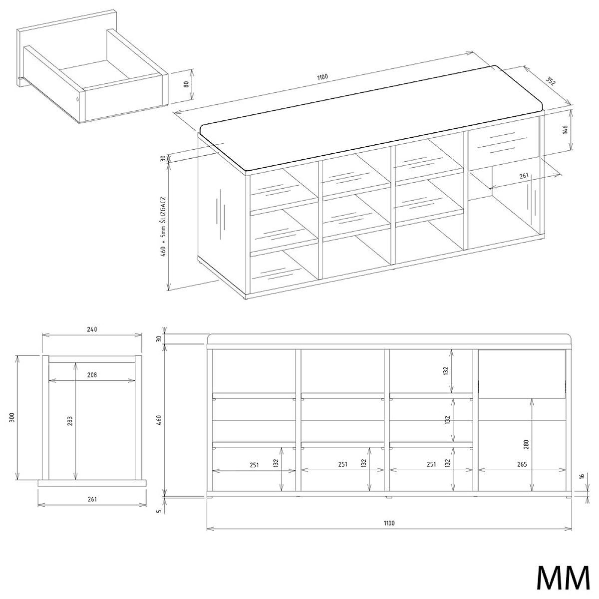Praktisches Schuhregal mit Sitzbank und Stauraum. .. mehr