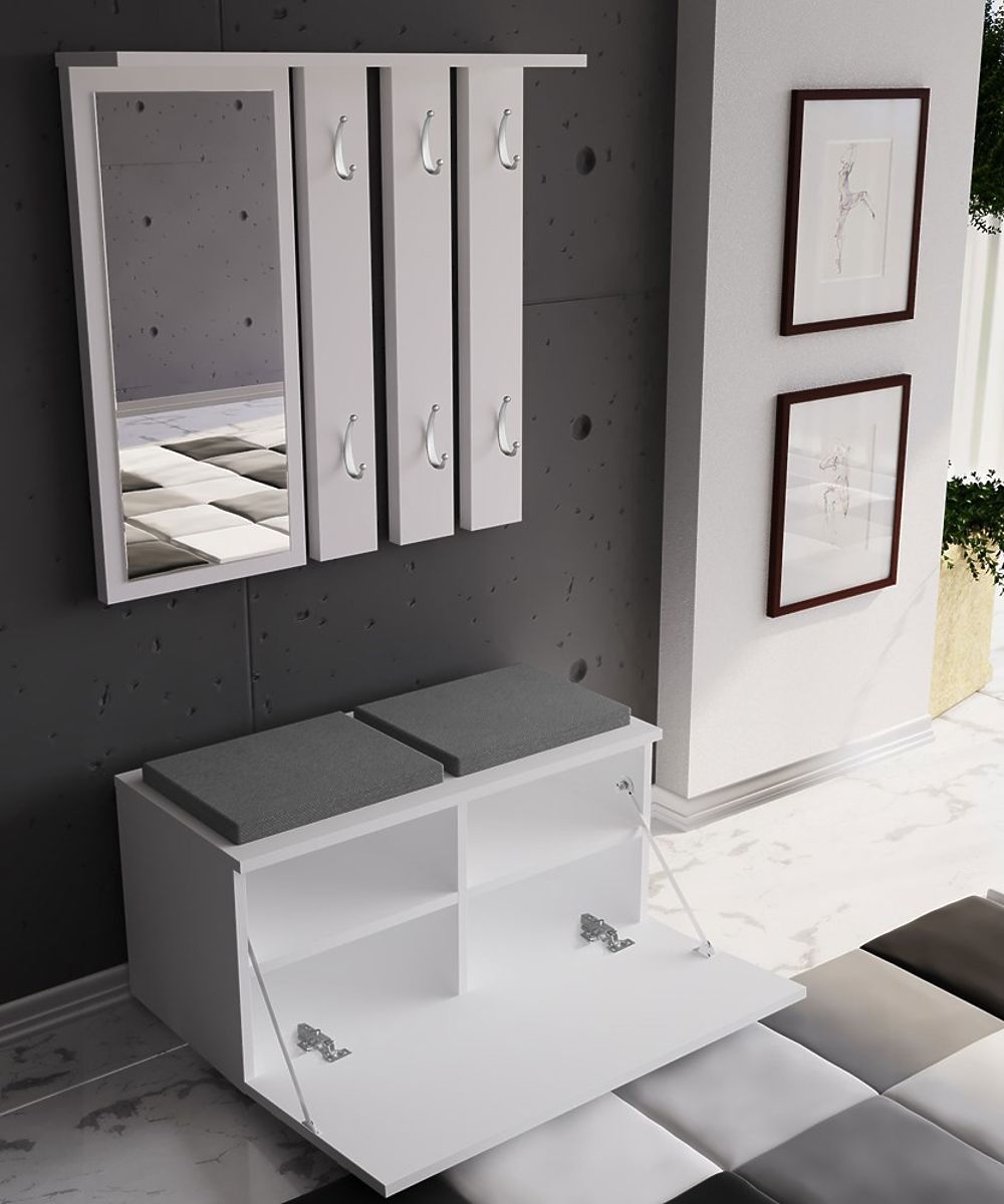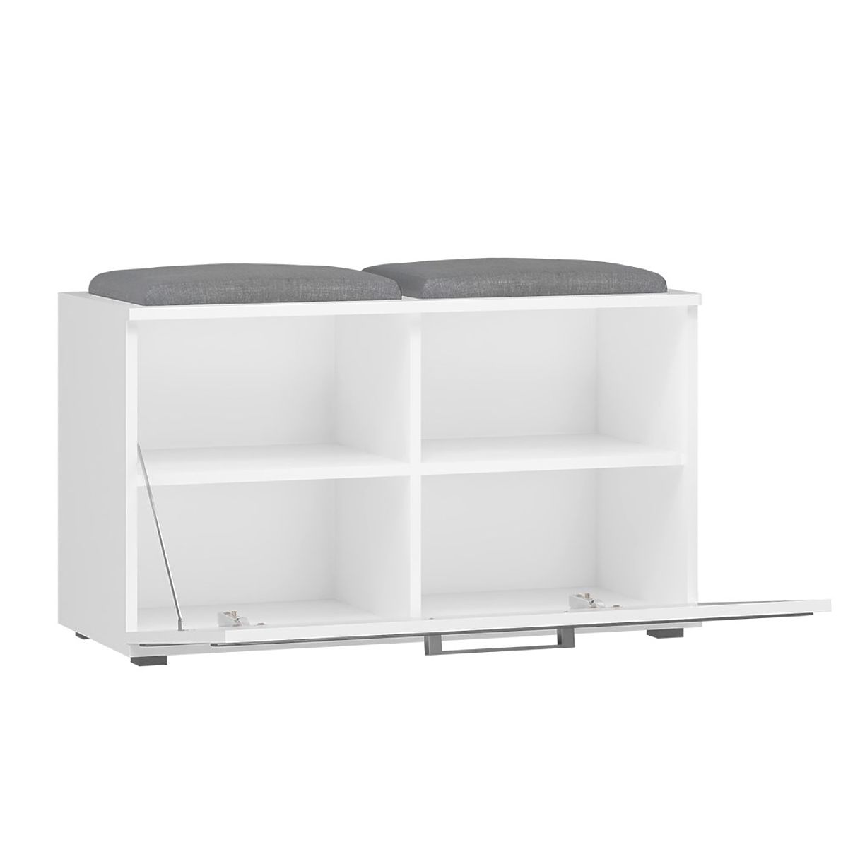 Schuhschrank mit Bank und Stauraum, matt weiß. .. mehr