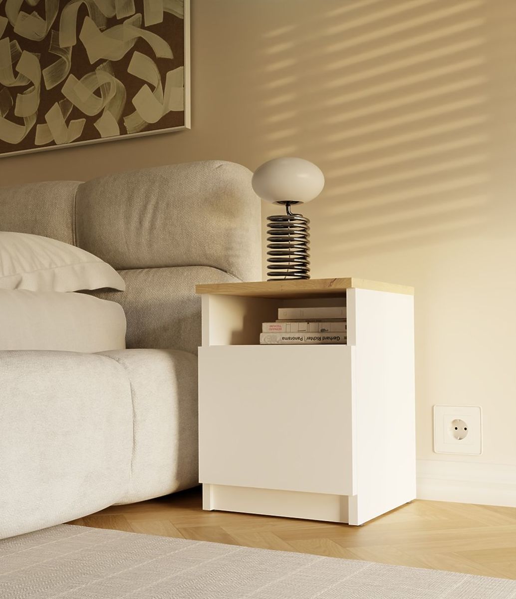 • Offenes Regal und geschlossener Raum hinter der Tür: ideal zur Aufbewahrung der wichtigsten Dinge wie Telefon, Ladegerät, Buch oder Brille.