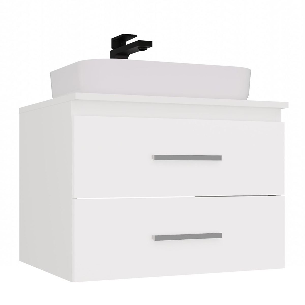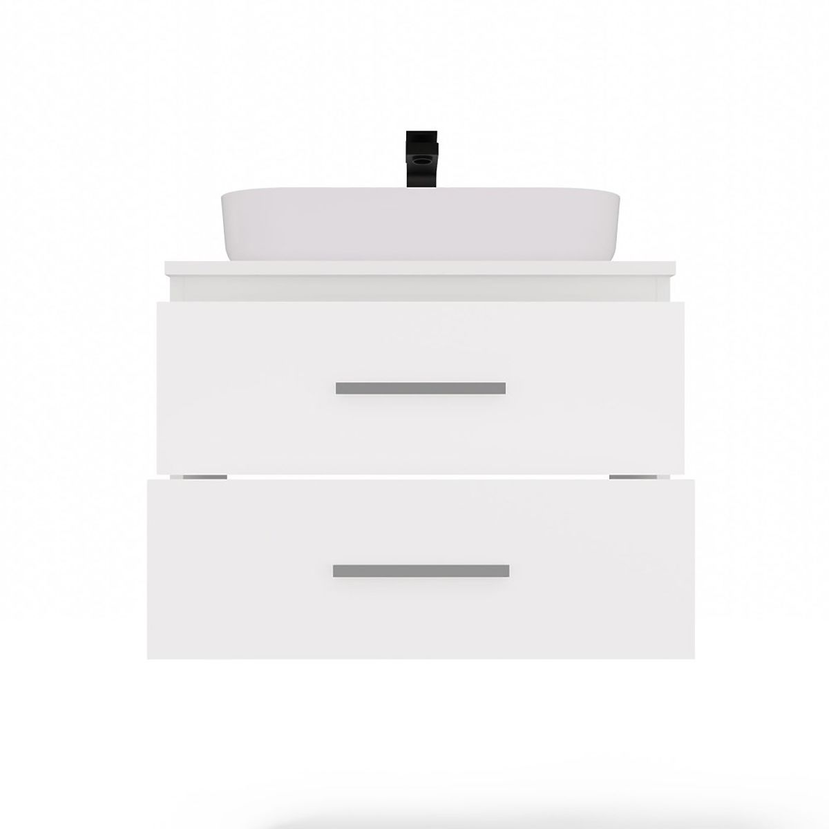 Der Schrank ist als Basis für ein Aufsatzwaschbecken konzipiert (Waschbecken nicht im Lieferumfang enthalten – es muss separat nach eigenen Vorlieben ausgewählt werden).