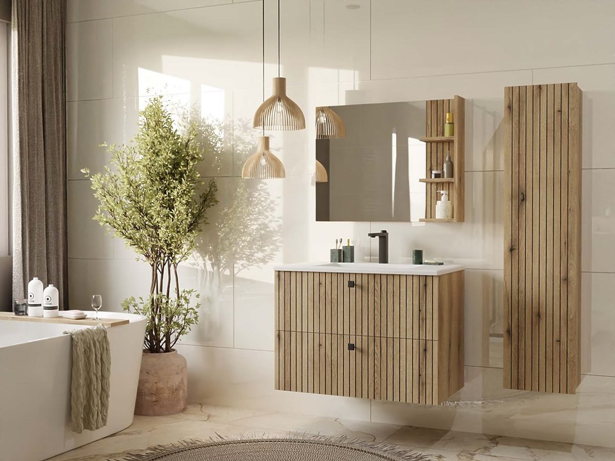 UNTERSCHRANK FÜR WASCHBECKEN TIGO 80 2S EICHE EVOKE GERILLTE FRONT + WASCHBECKEN