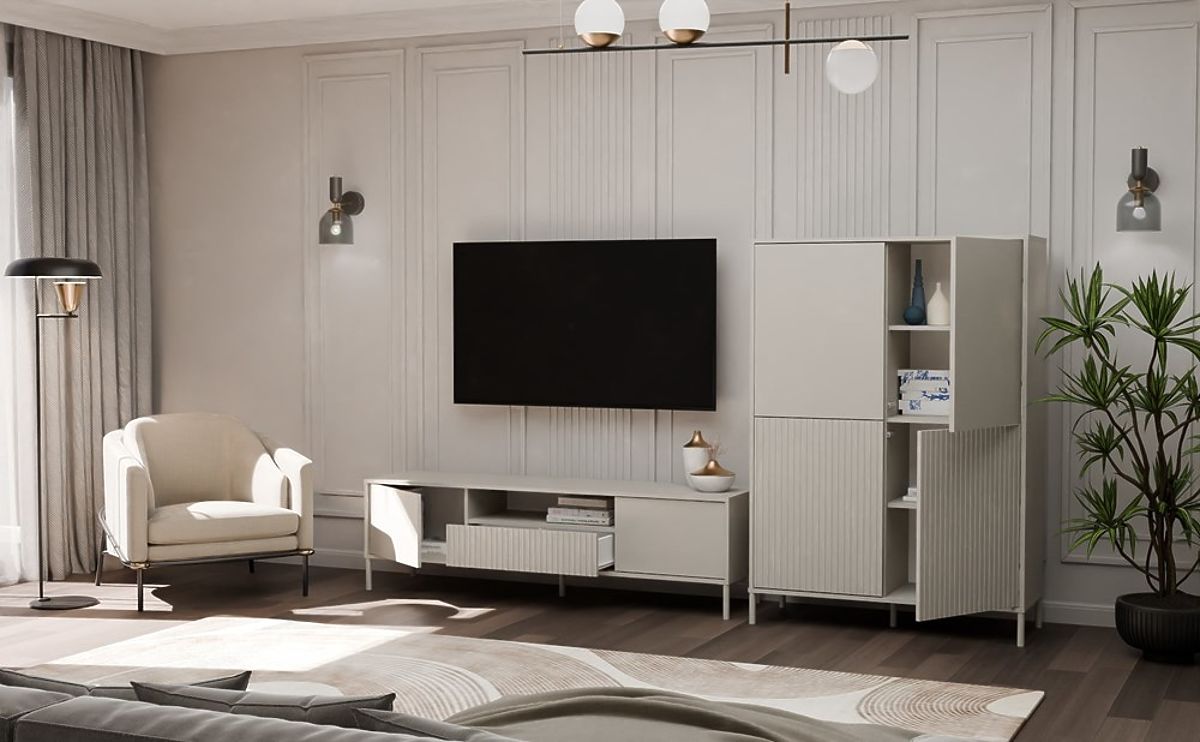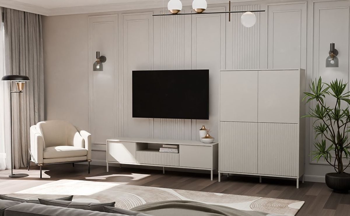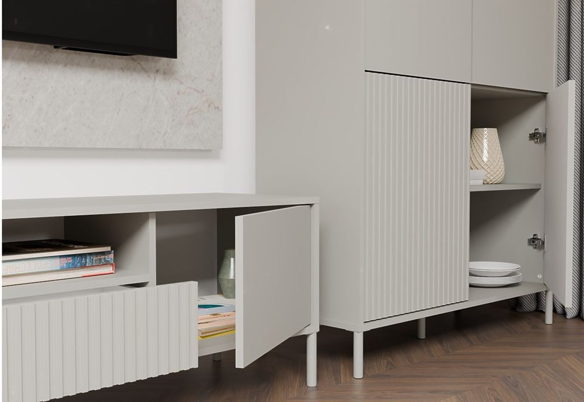 Lukahome.at » Nábytek / Komody / Vitrine KAMARO 4DK SLIM/GLATT KASCHMIR 4 Türen Lamellen Geriffelt + Klassische Front
