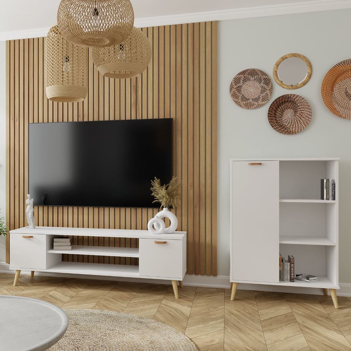 Funktionaler weißer Regal im skandinavischen Stil für moderne Innenräume. .. mehr