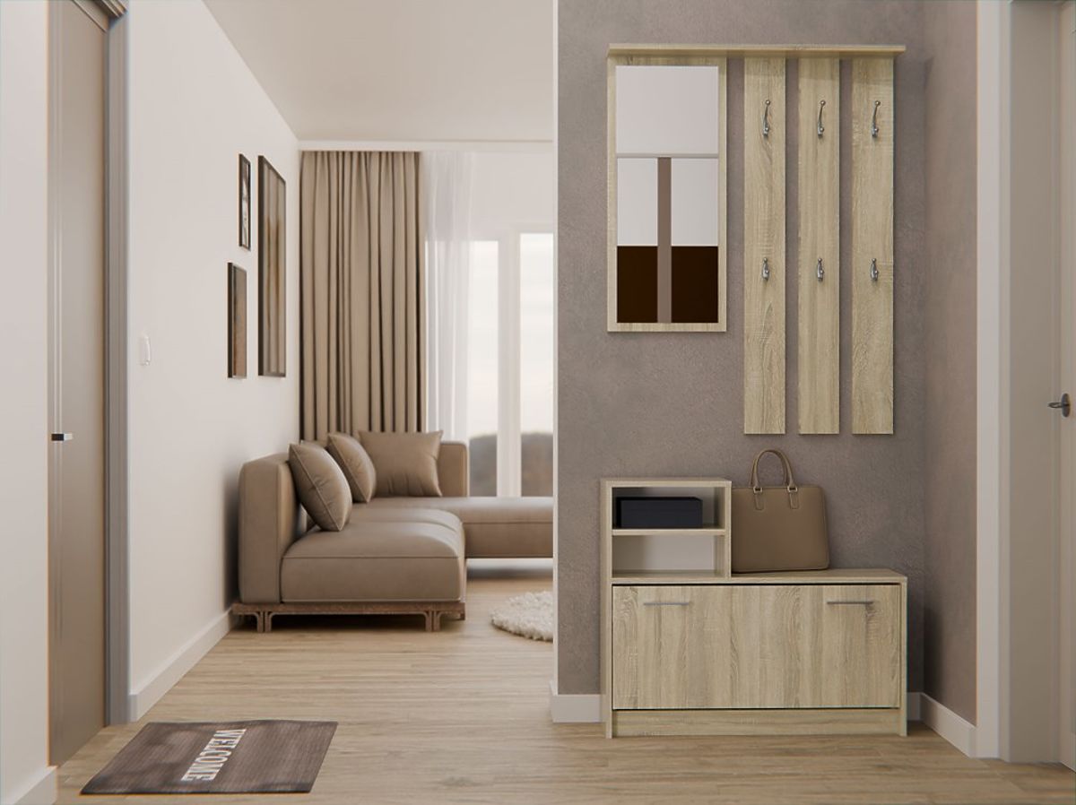 Flurschrank mit Spiegel und Schuhschrank in Eiche Sonoma. .. mehr
