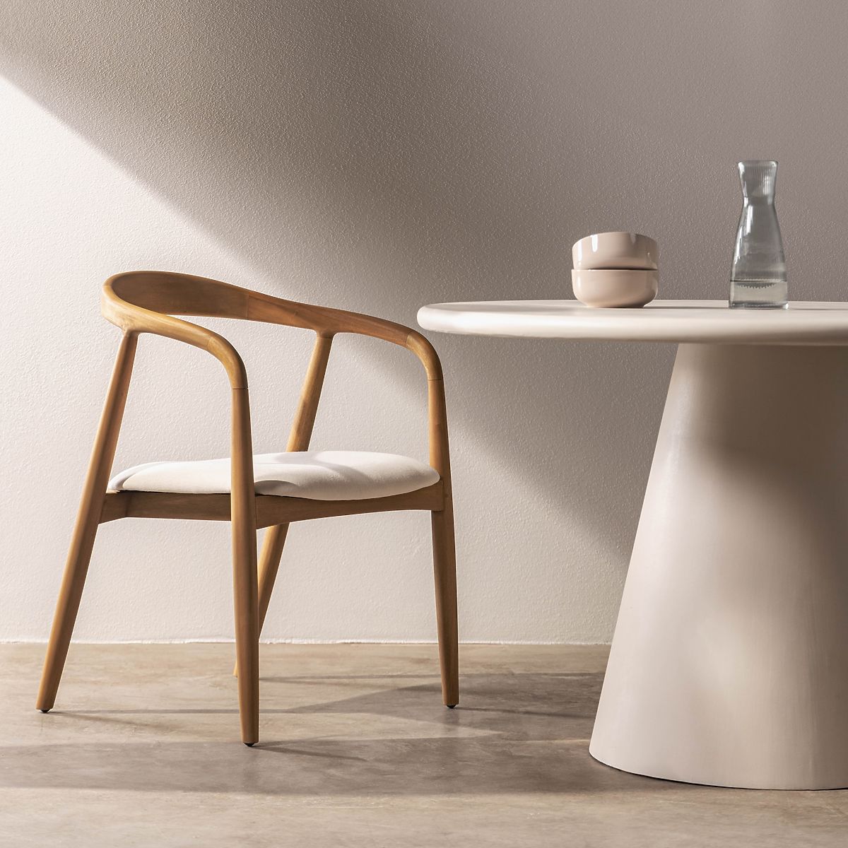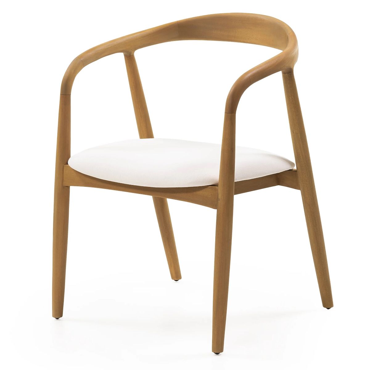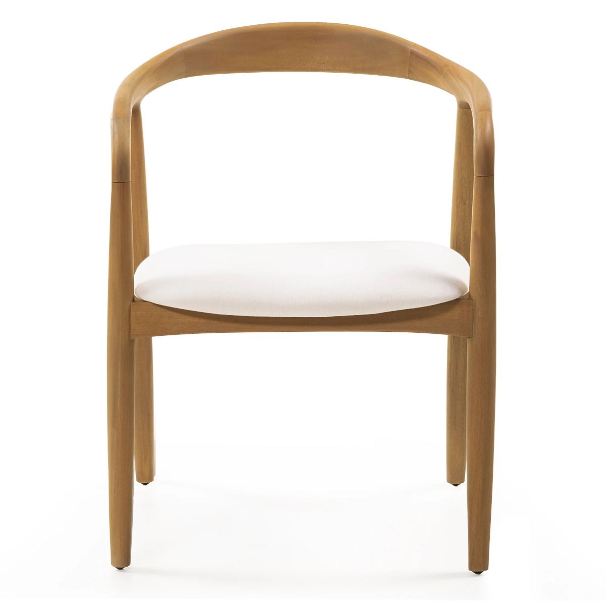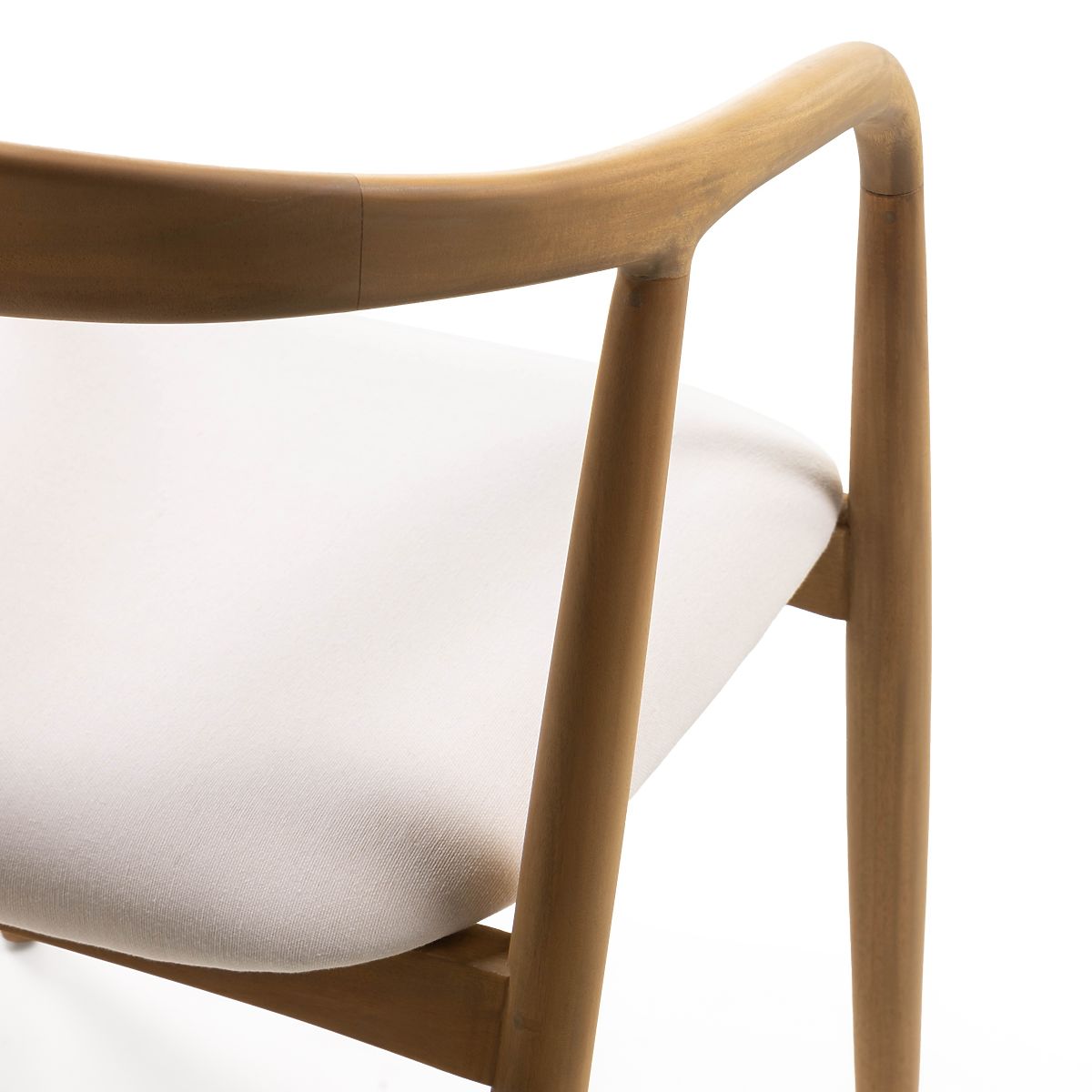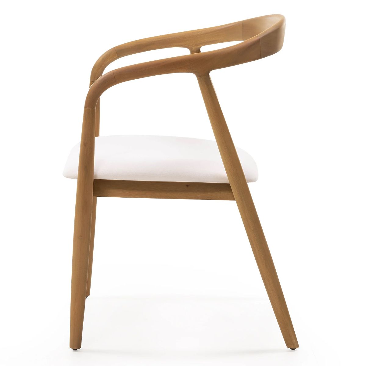 Abgerundeter Mahagoniholzstuhl mit ecrufarbenem Sitzbezug. .. mehr