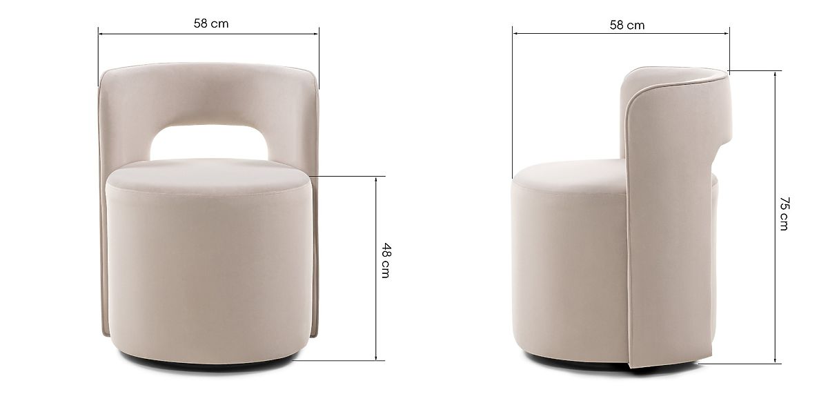 Drehbarer Stuhl Raval mit Samtbezug und dekorativem Ausschnitt. .. mehr