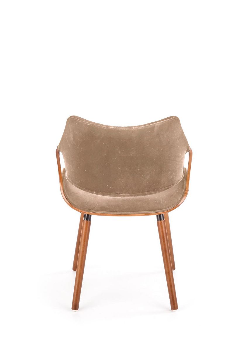 Stuhl aus gebogenem Sperrholz und Massivholz in Nussbaum und Beige. .. mehr
