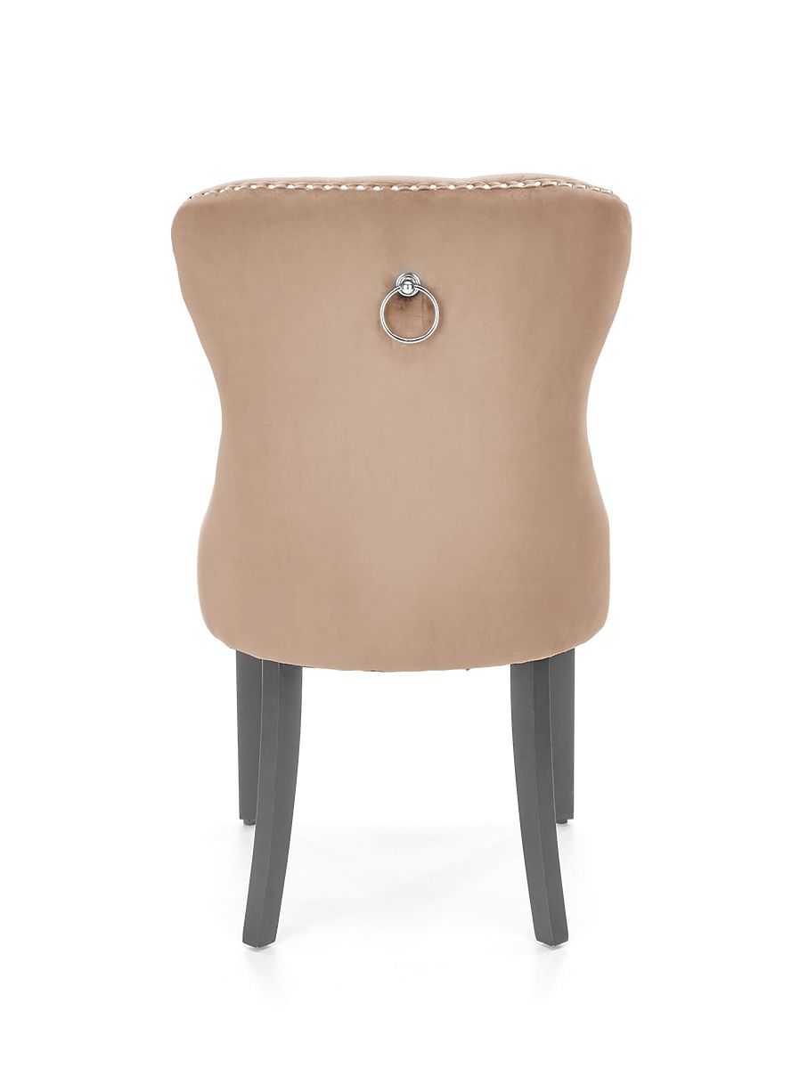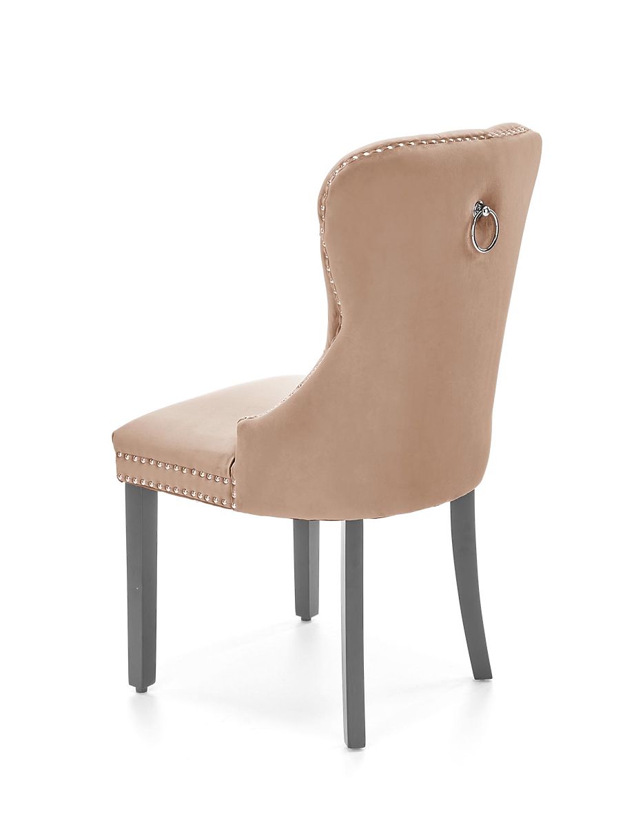Stuhl aus Massivholz mit Samtbezug in Schwarz und Beige. .. mehr