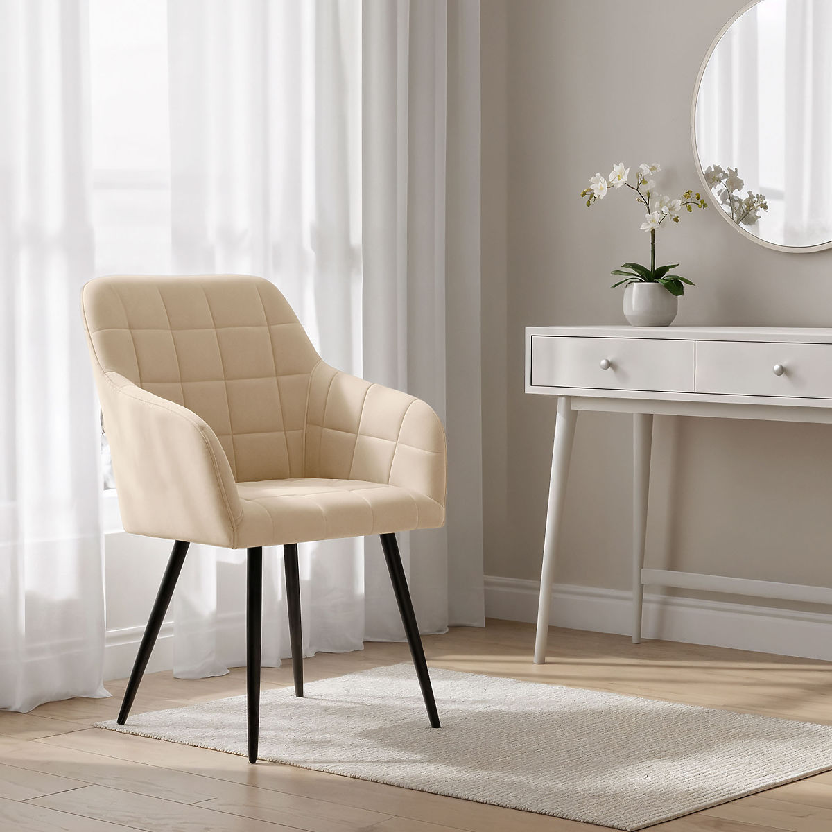 Lukahome.at » Jídelna a kuchyně / Jídelní židle / 4x Gepolsterter Stuhl mit quadratischer Steppung Beige LUXANO Schwarze Beine