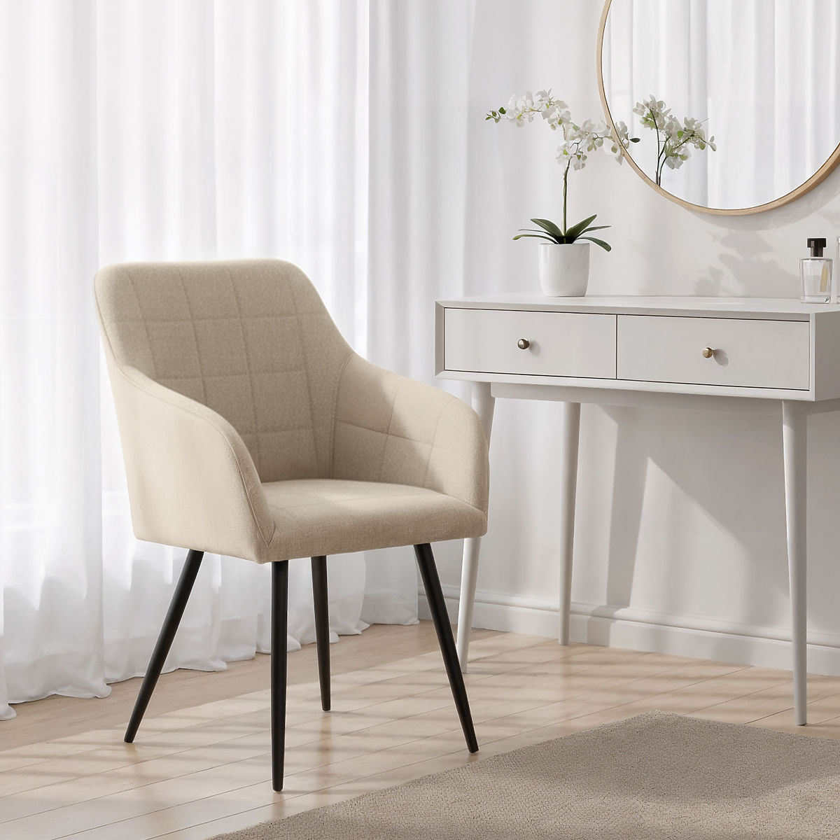 Lukahome.at » Jídelna a kuchyně / Jídelní židle / 4x Gepolsterter Stuhl mit quadratischer Steppung Beige LUXANO Schwarze Beine Stoff Lumos