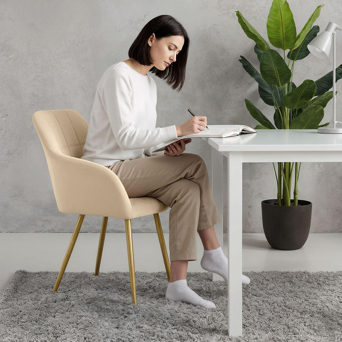 Lukahome.at » Jídelna a kuchyně / Jídelní židle / 4x Polsterstuhl mit quadratischer Steppung Beige LUXANO Goldene Beine