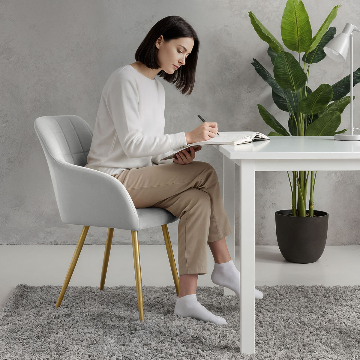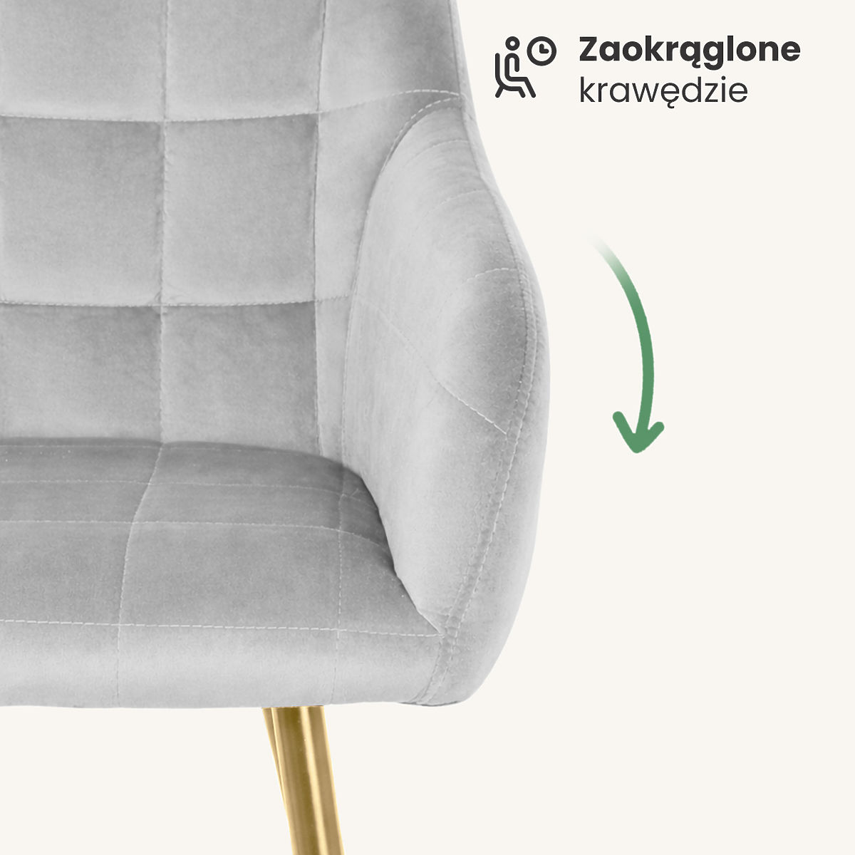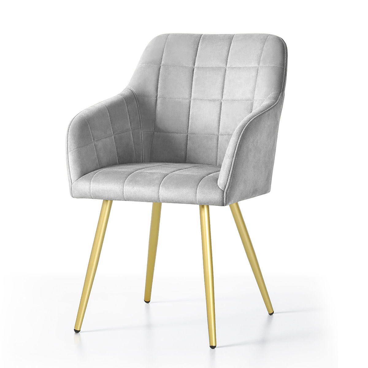 Lukahome.at » Jídelna a kuchyně / Jídelní židle / 4x Gepolsterter Stuhl mit quadratischer Steppung Grau LUXANO Goldene Beine