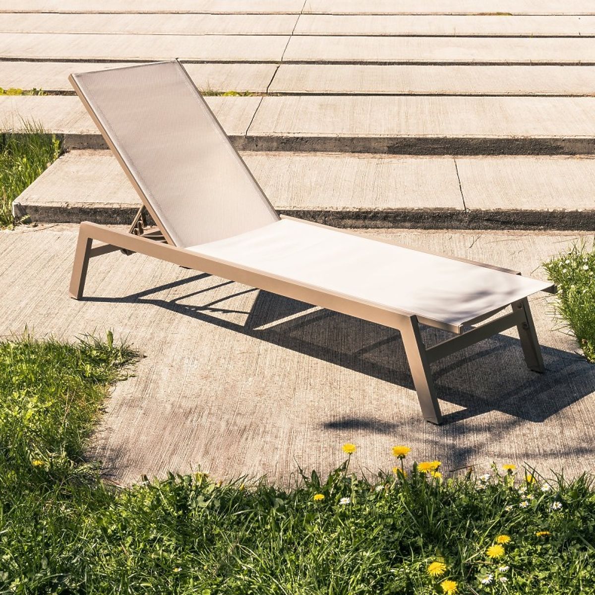 Verstellbare Gartenliege Shelly aus Aluminium und Polyester. .. mehr