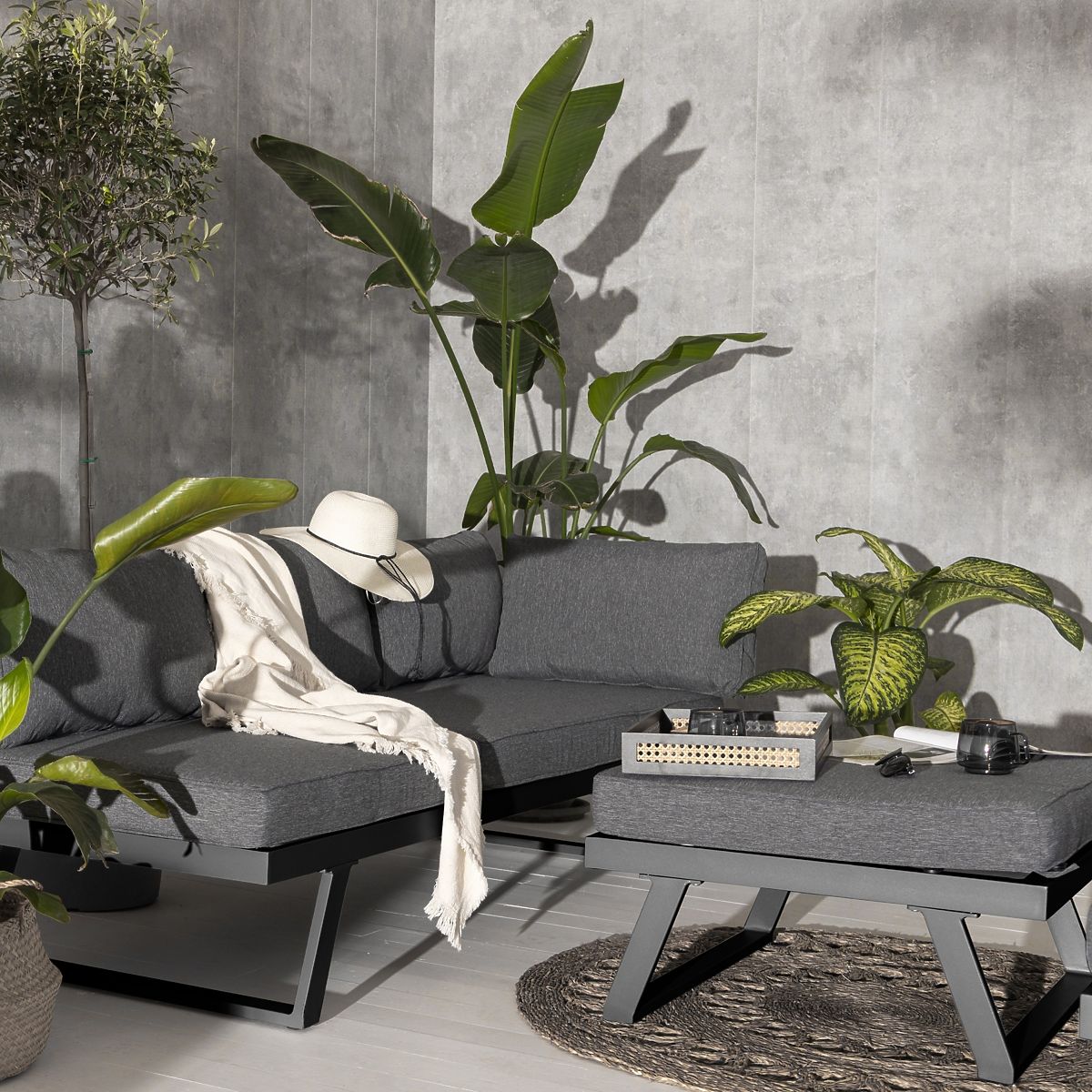 Ecksofa Lafoole Lunge mit Tisch, wetterbeständig und vielseitig konfigurierbar. .. mehr