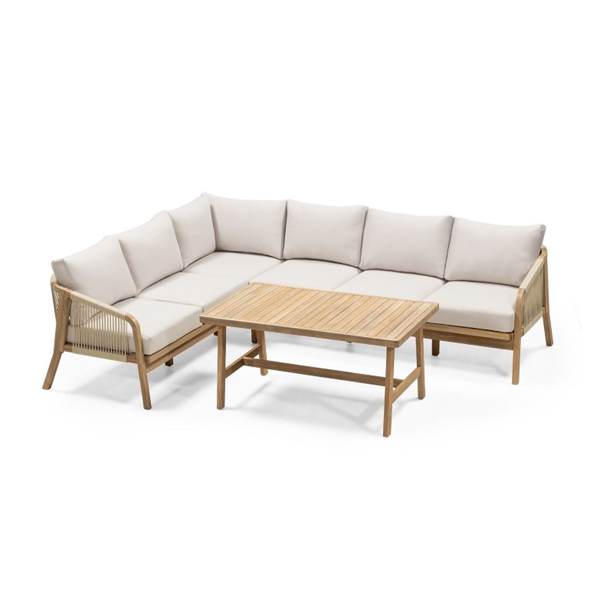 Lukahome.at » Gartenmöbel / Gartensets / Garten-Ecksofa-Set mit Tisch Castello, Geflecht, Akazienholz FSC, Teakoptik, Beige